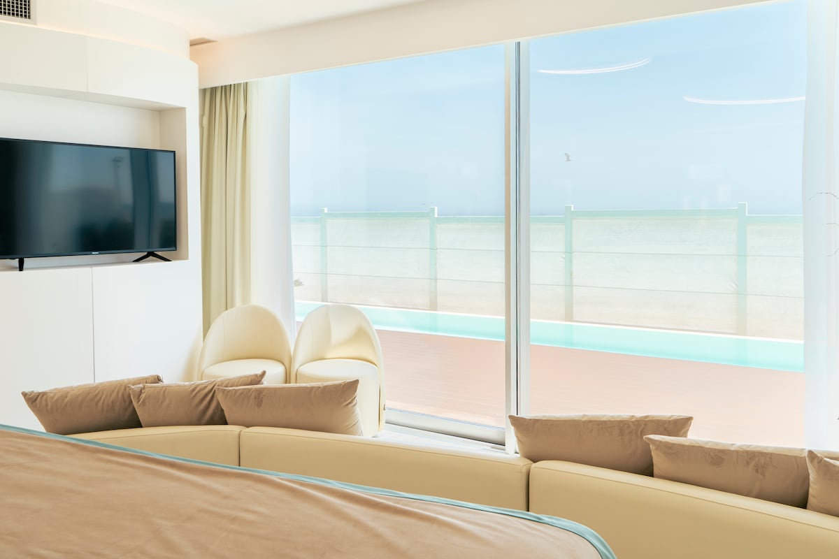 Godetevi la splendida vista sul mare dalle nostre sei suite in riva al mare, tutte dotate di comfort moderni per offrire il massimo della comodità ai nostri ospiti. L’esperienza sensoriale prende vita attraverso tutti i materiali utilizzati per la creazione delle suite, tra cui rovere massiccio europeo, marmo e cristallo che trasmettono le vibrazioni della natura. La cromoterapia delle docce, il pavimento radiante e l’illuminazione contribuiscono a rendere l’atmosfera intima e rilassante.