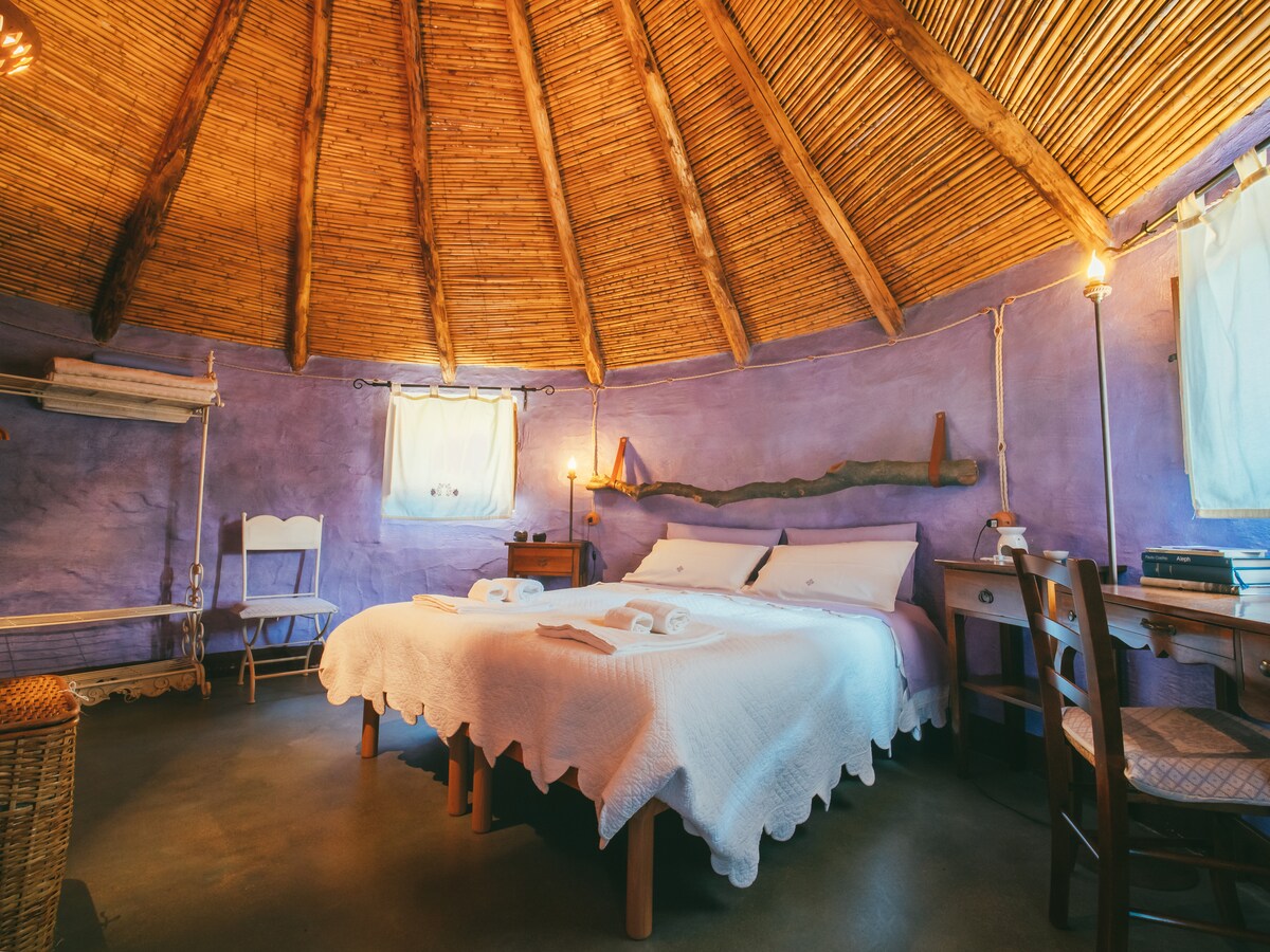 4 chozas ecológicas de piedra y madera con techos en forma de cono, caminos con aceites esenciales, cromoterapia y aromaterapia, jardines sensoriales y salones al aire libre vintage. Cada cabaña está vinculada a una planta sarda, a su color y a su esencia. Dispondrás de todo lo necesario para desayunar en tu habitación. ¡Enriquece la experiencia con tratamientos de bienestar y masajes de relajación, sesiones de yoga y meditación! Todo aquí se trata en detalle con amor, ¡es un oasis de paz en el Parque Natural de Tepilora!