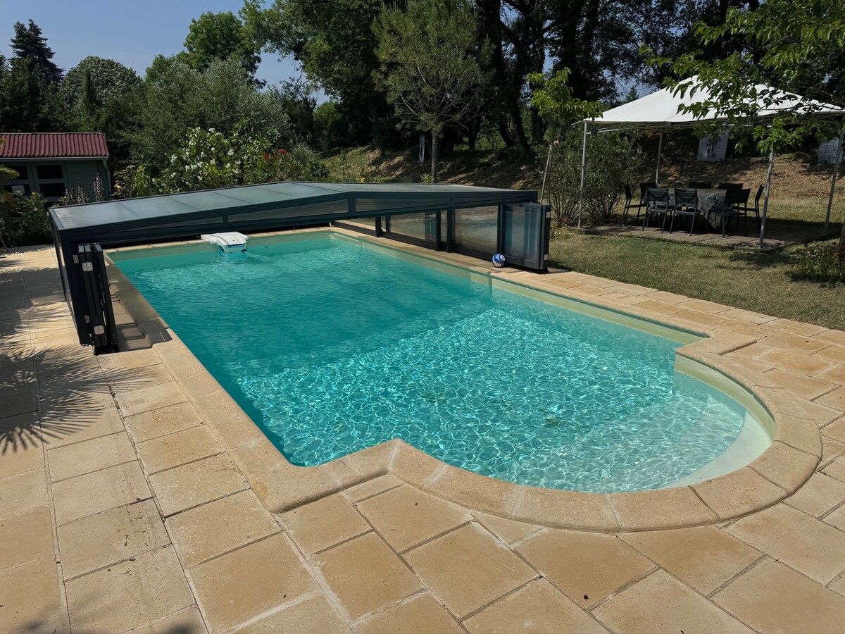 Hermosa casa de campo, piscina climatizada y jardín vallado.