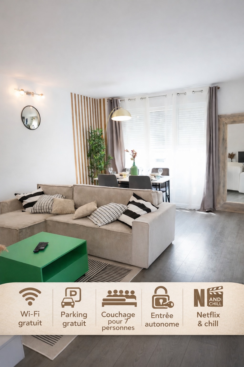 ¡Ubicado en el corazón del distrito de Aubervilliers, ven a disfrutar de la calma absoluta que ofrece el Clos d'Auber! ¡Mi alojamiento tiene una valoración de 4**** en Francia! - Puerta de entrada perfecta para visitar París (línea 12). - Perfecto para el Stade de France (a 30 minutos a pie). - ¡Aparcamiento incluido con cargador para vehículos eléctricos! ¡80 m² ubicados a las puertas de París, con terraza, cerca de todos los servicios! - Fibra y wifi - Canal+, Netflix, Disney+, Apple TV+, Apple. - Cafetera Nespresso - Cocina Equipada - Lavadora y secadora. - Toallas, sábanas.