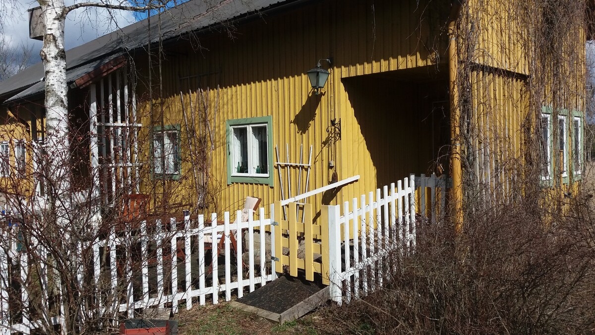 Un conjunto atmosférico decorado con muebles autóctonos únicos. Aquí, la mente descansa y se calma en la naturaleza. Es un lugar maravilloso para un turista que quiere vivir una pequeña casa de campo. Me gusta mostrar el jardín, las plantas y nuestros maravillosos animales. El espacio ha sido diferente del perro del barco familiar y el perro Lapland. Los caballos se pueden rayar y, si quieres, hornearé o herviré huevos de nuestra propia granja de pollos orgánicos. Este alojamiento no es adecuado para familias con niños, solo para adultos.