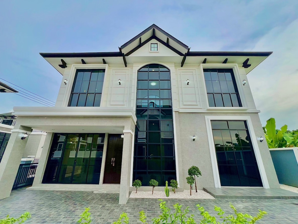 亲爱的房客朋友,您好! ①探索别墅,这是一个令人惊叹的角落房源,拥有3间装饰精美的卧室,风格奢华。 享受宽敞的生活。 这栋别墅距离迷人的海滩和当地景点仅几分钟路程,是家庭和朋友的理想度假胜地。 配备空调、烧烤区、无线网络等便利设施。 ②我们的房源位于许多景点的中心地带!距离以下列表仅5分钟路程: -赛凯海滩( Sai Kaew Beach ) - Legend Siam -邦萨尔海滩 -哥伦比亚水上乐园 -邦萨尔( Bang Sare )生鲜市场 -东芭乐园( Nong Nooch Tropical Garden ) -班安菲海滩( Ban Amphoe Beach ) - Khao Chi Chan -银湖葡萄园( Silverlake Vineyard ) - Upside Down House -距离Jomtien海滩20分钟车程 ③别墅出行方便,生活便利,安静舒适,能容纳6人聚餐,超大客厅餐厅,管家24小时免费贴心服务 ④有偿服务 曼谷芭提雅接送机、各大秀场门票优惠预定、高端定制、租车、包车、包船、翻译、地陪向导、厨师等。