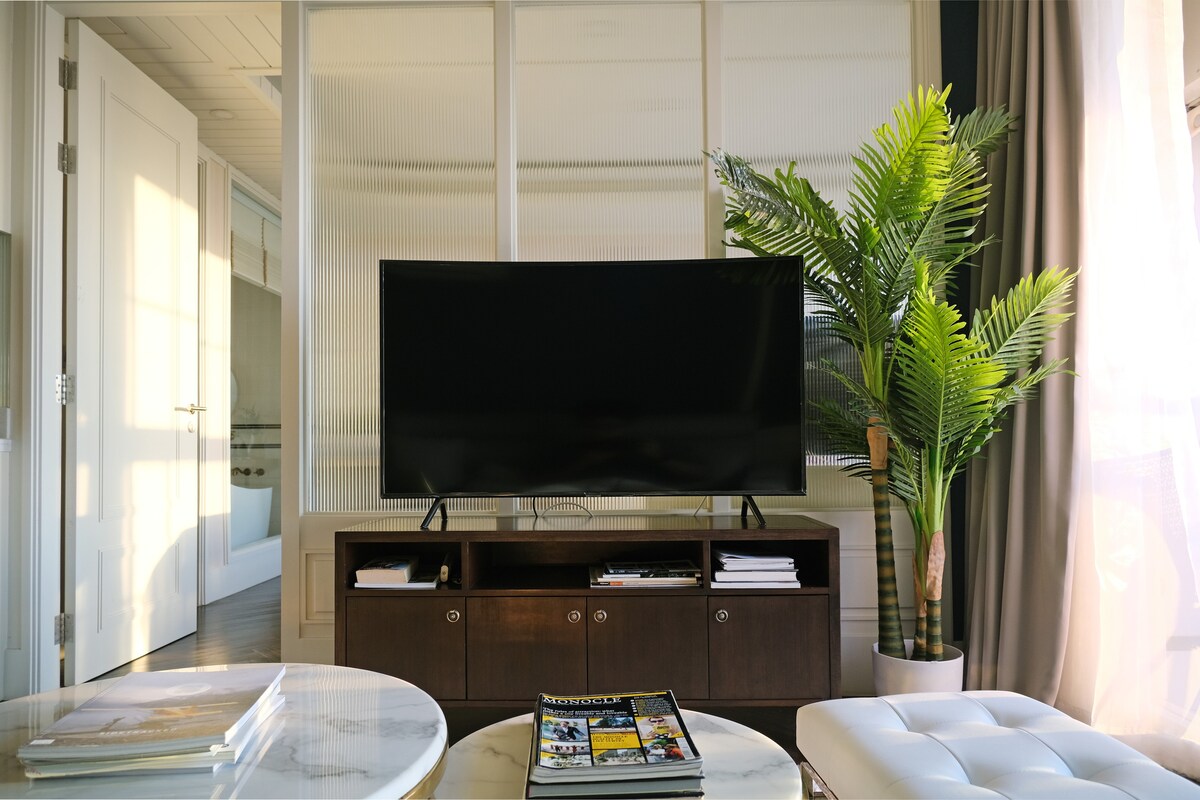 Veranda Residence Pattaya es una opción de alojamiento espaciosa, perfecta para parejas o viajeros solitarios. La habitación cuenta con un diseño contemporáneo con líneas limpias, una decoración minimalista y comodidades modernas. El dormitorio cuenta con una cómoda cama tamaño king y sábanas premium, lo que garantiza un buen sueño nocturno. El salón tiene un acogedor sofá y una televisión de pantalla plana con canales vía satélite. Además, también puedes disfrutar de la vista desde el balcón.