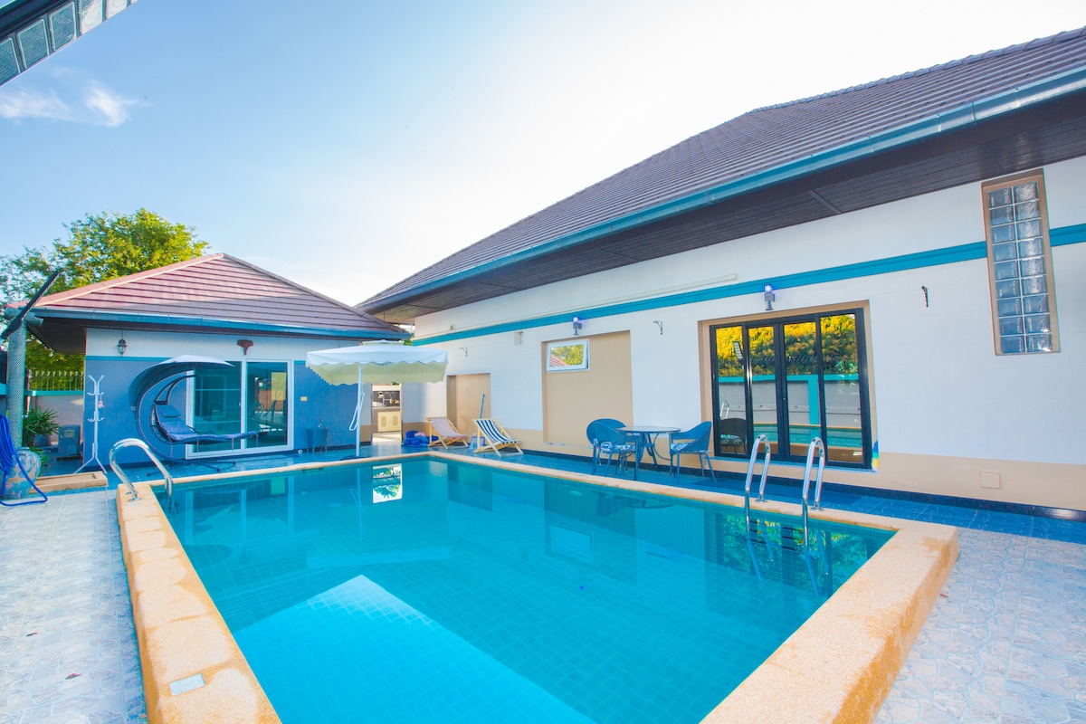 亲爱的房客朋友,您好! ①探索别墅,这是一个令人惊叹的角落房源,拥有3间装饰精美的卧室,风格奢华。 享受宽敞的生活。 这栋别墅距离迷人的海滩和当地景点仅几分钟路程,是家庭和朋友的理想度假胜地。 配备空调、烧烤区、无线网络等便利设施。 ②我们的房源位于许多景点的中心地带!距离以下列表仅5分钟路程: -赛凯海滩( Sai Kaew Beach ) - Legend Siam -邦萨尔海滩 -哥伦比亚水上乐园 -邦萨尔( Bang Sare )生鲜市场 -东芭乐园( Nong Nooch Tropical Garden ) -班安菲海滩( Ban Amphoe Beach ) - Khao Chi Chan -银湖葡萄园( Silverlake Vineyard ) - Upside Down House -距离Jomtien海滩20分钟车程 ③别墅出行方便,生活便利,安静舒适,能容纳6人聚餐,超大客厅餐厅,管家24小时免费贴心服务 ④有偿服务 曼谷芭提雅接送机、各大秀场门票优惠预定、高端定制、租车、包车、包船、翻译、地陪向导、厨师等。