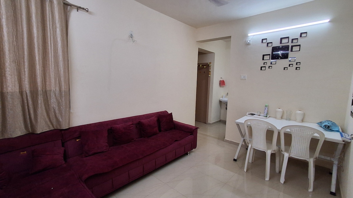 Apartamento de 1800 pies cuadrados en el tercer piso con aire acondicionado (2 dormitorios) con 3 baños, ascensores, 2 balcones, impresionantes vistas al jardín, nevera, horno microondas, batidora, cómoda sala de estar y comedor, purificador de agua para agua potable, nevera, conexión de gas y utensilios para cocinar, lavadora y TV con TataSky y conexión wifi, rodeado de restaurantes, lecherías, clínicas hospitalarias, tiendas de comestibles, lavandería, gasolineras, autobús, coche, servicio de taxi, cerca de SG Road, estación de metro, conexión ferroviaria y muchos más.