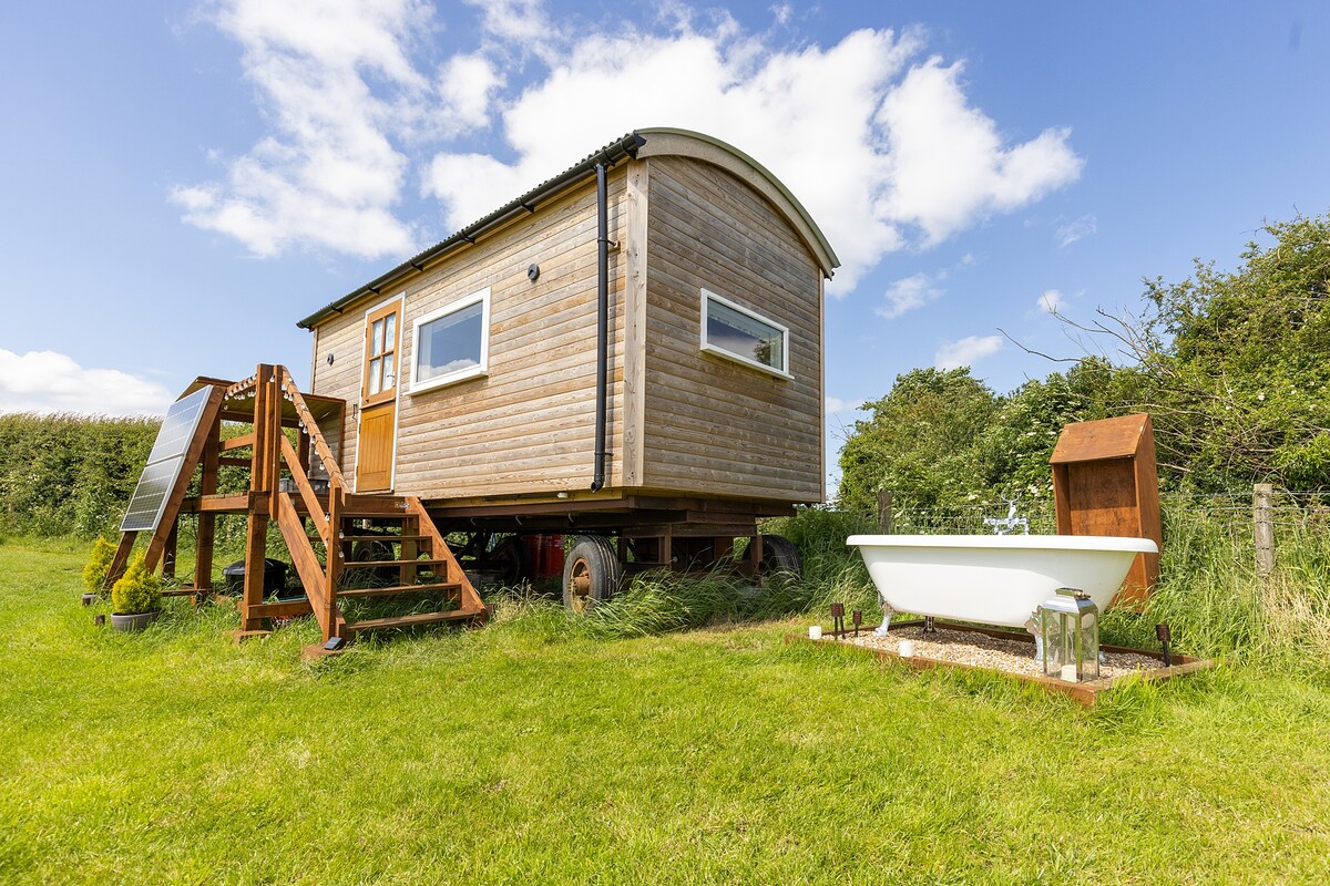 Set in a secluded spot, this cosy hut offers peace, nature, and stunning paddock views- just a 15 min walk to Scarborough. Soak under the stars in the outdoor bath or toast marshmallows by the fire pit. Inside, there’s a comfy double bed, log burner (starter logs included), bathroom, kitchen & seating. Off-grid but with a plumbed shower! No mains electric; solar only. A cool box is provided instead of a fridge, plus fluffy dressing gowns & towels for extra comfort.