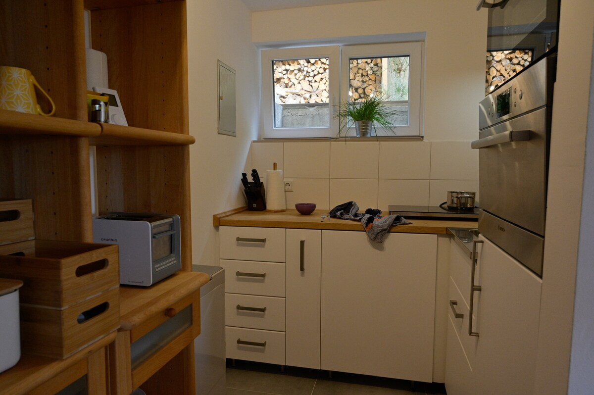 Nuestro apartamento granero con grandes camas de la época de la bisabuela está equipado con una acogedora sala de estar, 2 televisores y wifi. En el dormitorio pueden pernoctar 3 personas, además de 4 huéspedes en la sala de estar. (Cama doble de 2x2 m y sofá cama de 120x200 cm). La cocina invita a cocinar. El baño tiene ducha, inodoro y lavabo. El apartamento tiene su propia entrada. Se vive solo muy tranquilo en el granero justo al lado del jardín. Nuestro Wallbox en el patio proporciona la mayor comodidad para recargar el coche eléctrico.