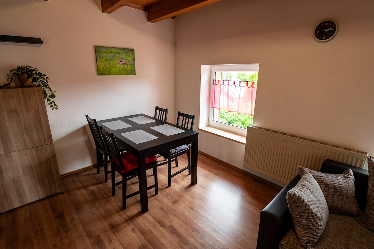 ¡Bienvenido a nuestro acogedor apartamento en la hermosa Selva Negra! Con aproximadamente 70 metros cuadrados, ofrece espacio para hasta 4 personas. Duerma cómodamente en una cama de 1,80 m o en un cómodo sofá cama. El apartamento está equipado con todo lo necesario para que se sienta como en casa durante su estancia. Disfrute de sus comidas en el interior o en la terraza privada y relájese en un ambiente tranquilo. ¡Esperamos su visita!
