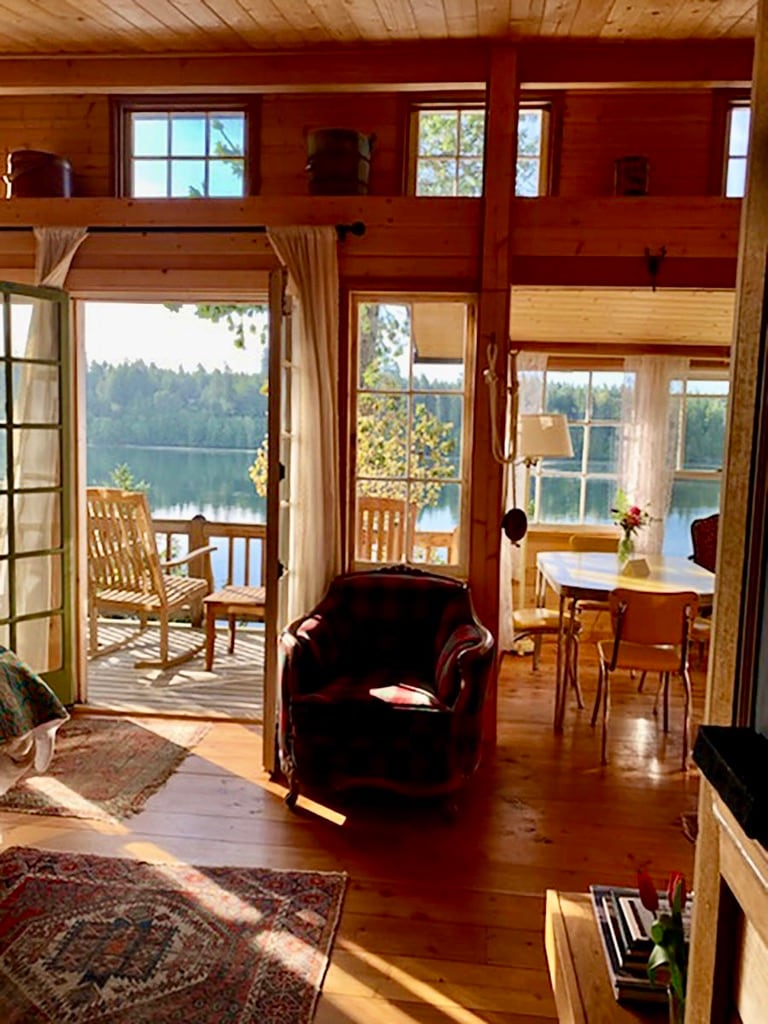 Casa de campo frente al lago con sauna caliente y patio trasero grande