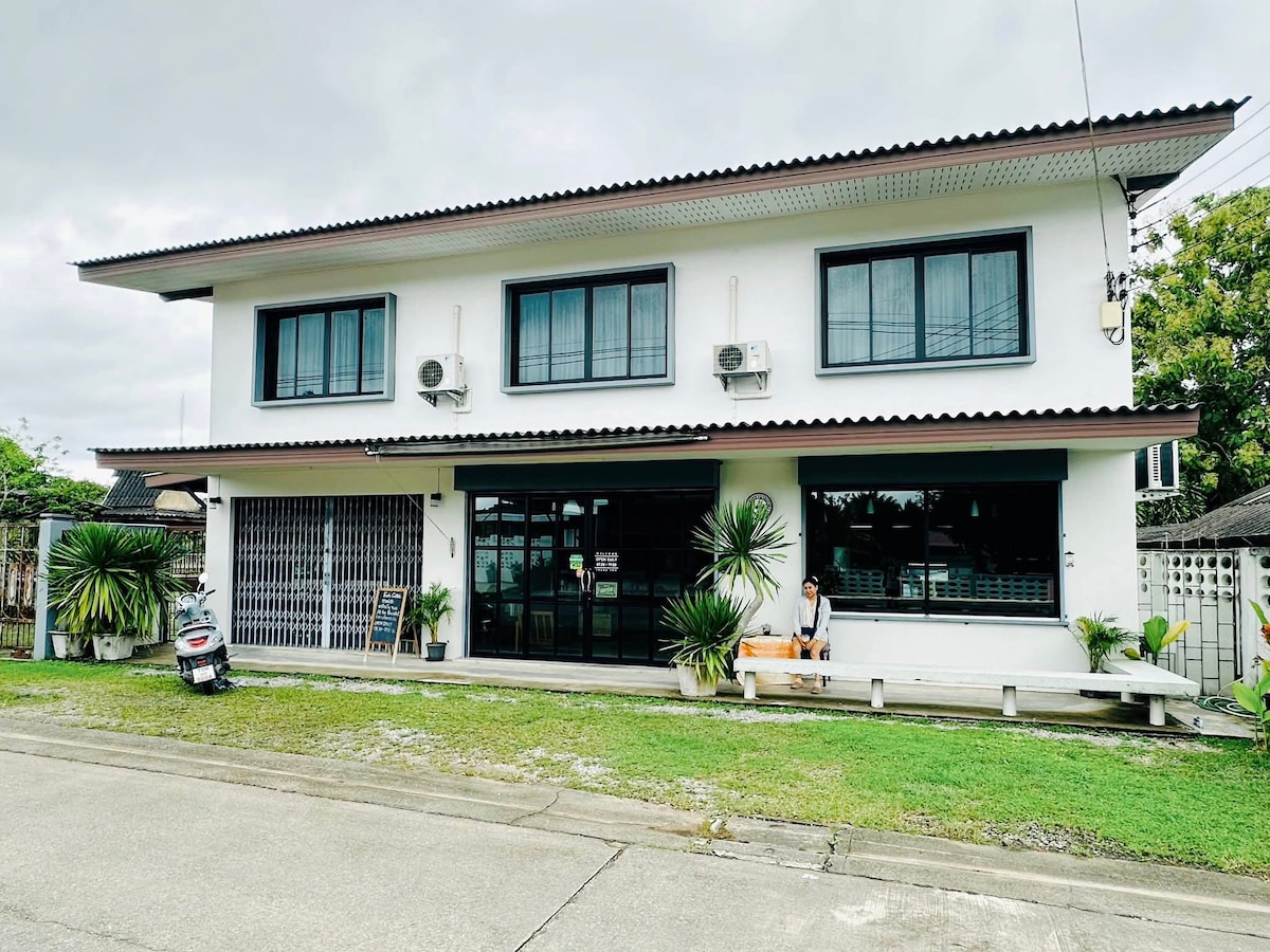 Una espaciosa casa de vacaciones, ideal para una escapada relajante, con capacidad para un máximo de 6 huéspedes. La planta baja cuenta con un gran televisor de pantalla plana y una mesa de billar para entretenerse. Una cocina totalmente equipada permite comidas caseras, mientras que los kayaks de cortesía ofrecen la forma perfecta de explorar las aguas cercanas. A pocos pasos, una encantadora cafetería te espera para una acogedora pausa para tomar un café. 🍃☕️ บ้านพักหลังใหญ่เหมาะกับการพักผ่อน สามารถพักได้ 6 คน ชั้นล่างมีทีวีจอใหญ่ และโต๊ะพลู สามารถประกอบอาหารได้ และมีเรือคายักให้พายฟรี