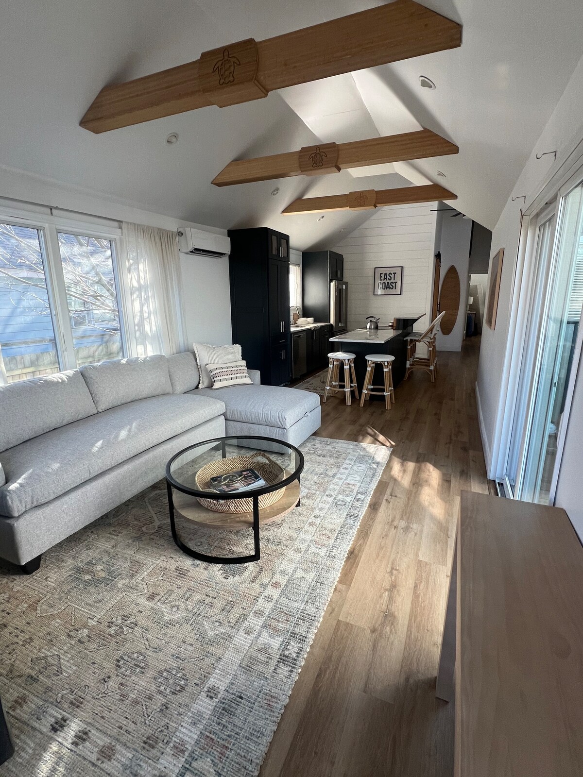 ¡Escápate a una casa de playa única frente al mar, a solo una hora de Brooklyn y Nueva York! Sumérgete en el impresionante entorno natural y disfruta de impresionantes vistas al agua de 180 grados desde todas las habitaciones. Con 4 dormitorios y 2,5 baños, nuestra casa de playa moderna de mediados de siglo, cuidadosamente restaurada, ofrece un flujo abierto y una sensación de aire que es perfecta para relajarse y reconectarse. Cómoda para 2-7 personas. No es ideal para niños pequeños o huéspedes con movilidad reducida, ya que hay escaleras empinadas dentro y fuera.