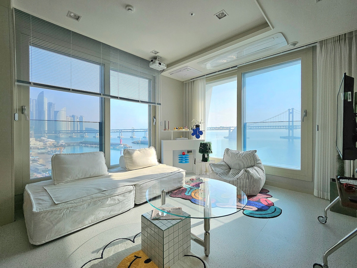 Garantía 🪽Blanc, el alojamiento más hermoso🪽 de Gwangalli, Gwangan, Gwangan🤍 ✔️Alojamiento legal seguro permitido, edificio de seguridad, estacionamiento gratuito Salida ✔️tardía a las 12:00🤍 ✔️Alojamiento incomparable, elegante y hermoso completamente blanco ¡Situado en una planta alta, ✔️la gente suprema más preferida! 🏆 ✔️ 2 dormitorios • Sala de estar • Cocina • Tocador • Vestidor Todas las habitaciones grandes separadas (las tarifas varían según la persona) ✔️ Cama tamaño queen + ropa de cama de lujo estilo hotel (se reemplaza cada vez) ✔️El mejor proyector de haz premium (estilo libre), Equipada con TV de espera En cuanto termine la ✔️limpieza, te llamaré para hacer el check-in en cuanto pueda.🤍 Alojamiento ✔️limpio que es limpiado y mantenido meticulosamente por un anfitrión profesional Opciones totalmente completas con todo excepto ✔️lo que no tienes ✔️¡La fantástica vista nocturna es lo básico! Cho hot place next to Milak The Market Bar🎆