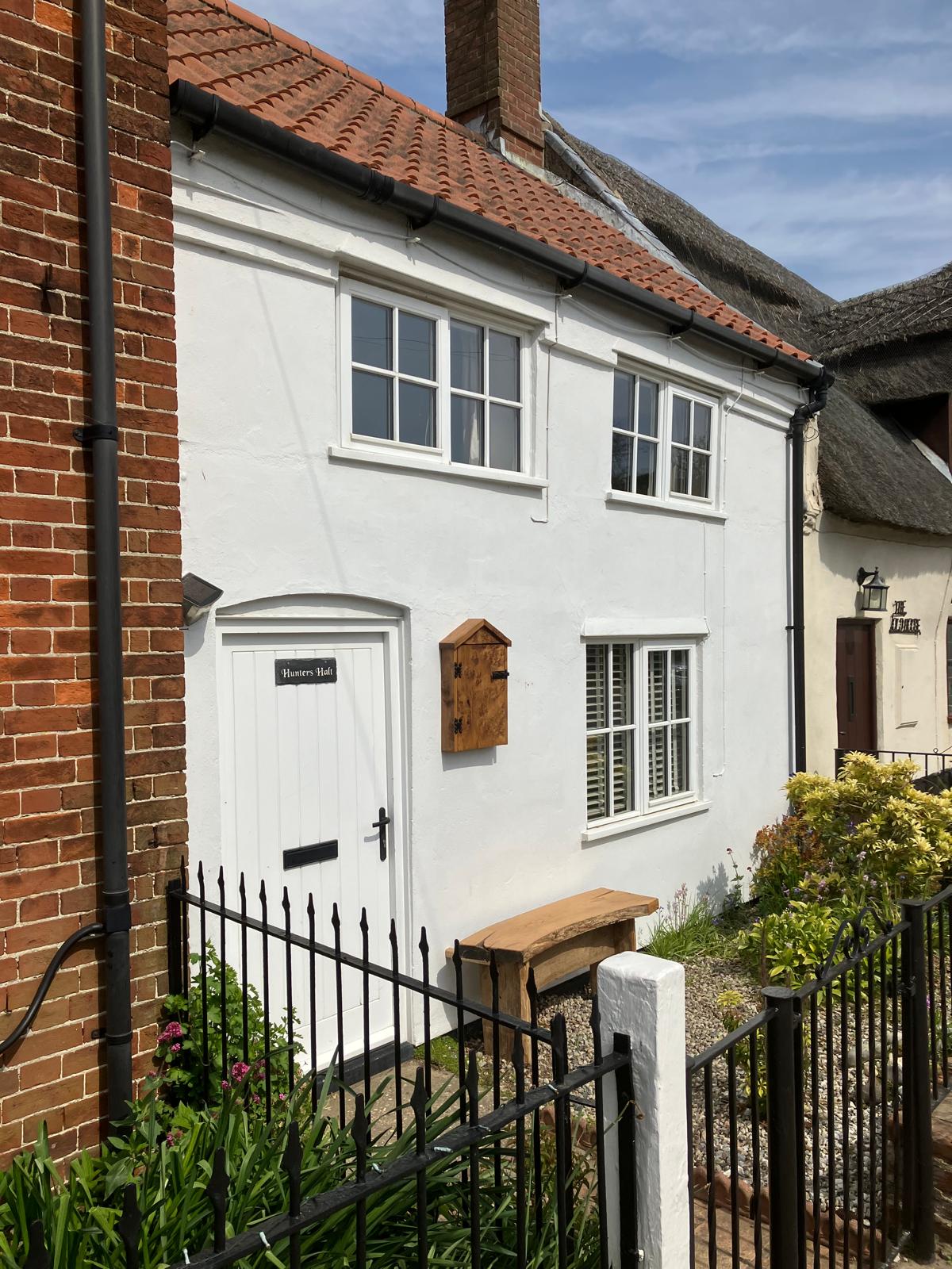 Sea Palling es un pueblo en Norfolk Broads. Los cielos son grandes y claros, el aire refrescado por las tormentas del Mar del Norte. Las noches son oscuras, el silencio es ininterrumpido. La cabaña se encuentra en el borde de un gran campo de cultivo a través del cual se extiende un sendero público a las dunas de arena y kilómetros de playa de arena sin interrupciones. Una puerta estable a la cabaña conduce a una sala de estar con vigas con un gran inglenook, una estufa de combustible múltiple y calefacción central. Desde este acogedor lugar está a poca distancia a pie de una tienda del pueblo y de la oficina de correos.