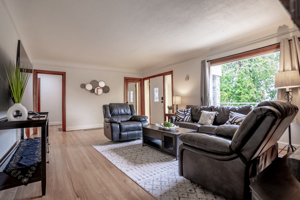 ¡Este es el lugar perfecto para una escapada en la concurrida ciudad de Seattle! Sentado justo en el famoso Burke-Gillman Trail, podrás disfrutar de una carrera para dar la bienvenida todas las mañanas. La ubicación es inmejorable. A 1 minuto de Seattle Children Hospital y a 4 minutos de UW y U-Village en coche. Siguiendo el camino en nuestro encantador y privado patio delantero, entrará a nuestra acogedora sala de estar donde podrá relajarse con niños o ancianos. Escritorio de trabajo en todas las habitaciones para trabajar desde casa. ¡Dormirás como la realeza en nuestras cómodas camas!