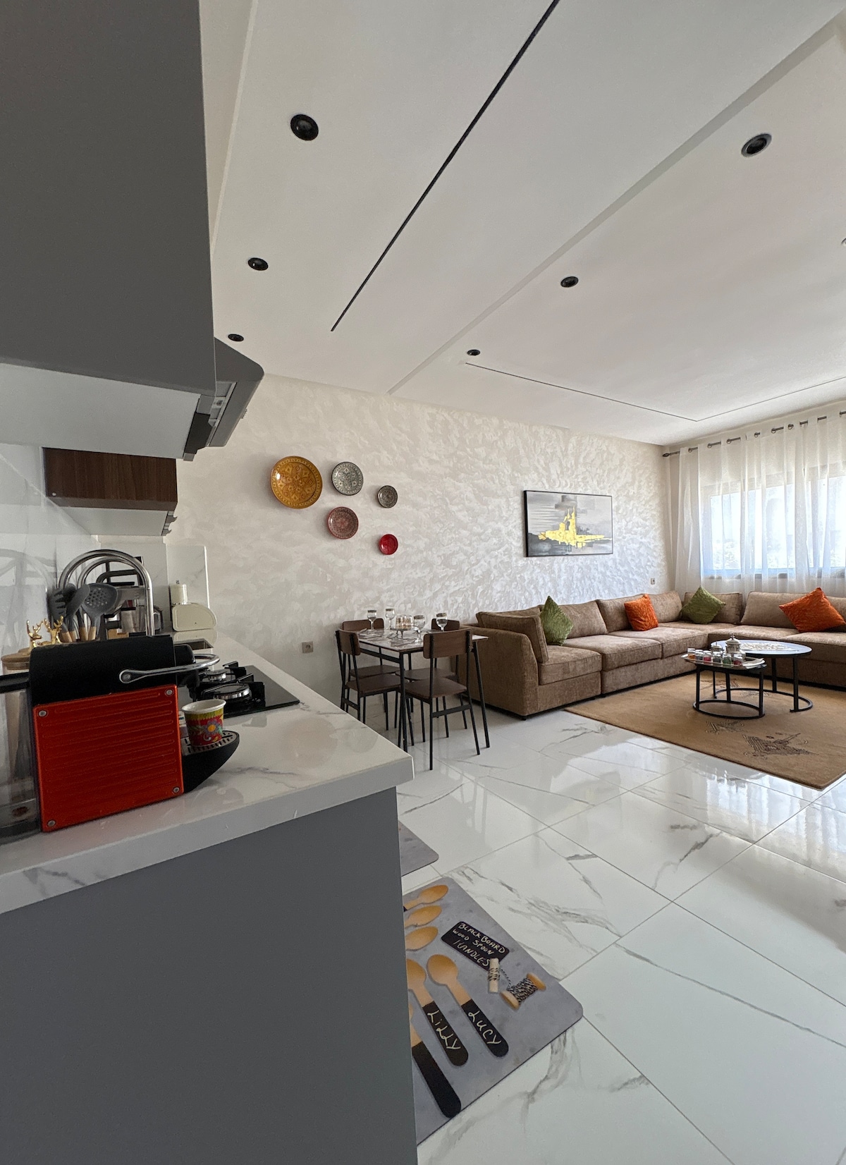 Deja atrás la rutina. Aquí, cada detalle te invita a bajar el ritmo y desconectar🌅 A solo un corto paseo de la arena, este apartamento luminoso y moderno ofrece más que una estancia, es un momento de calma entre la brisa del océano y la luz suave. 🛏️ Dos amplios dormitorios, tres cómodas camas Café de la☕ mañana con cápsulas proporcionadas, luz solar entrando por el salón Registro de entrada🚗 autónomo, aparcamiento gratuito, wifi de fibra, aire acondicionado y calefacción central 📺 Tres televisores con Netflix e IPTV Mehdia es sin esfuerzo