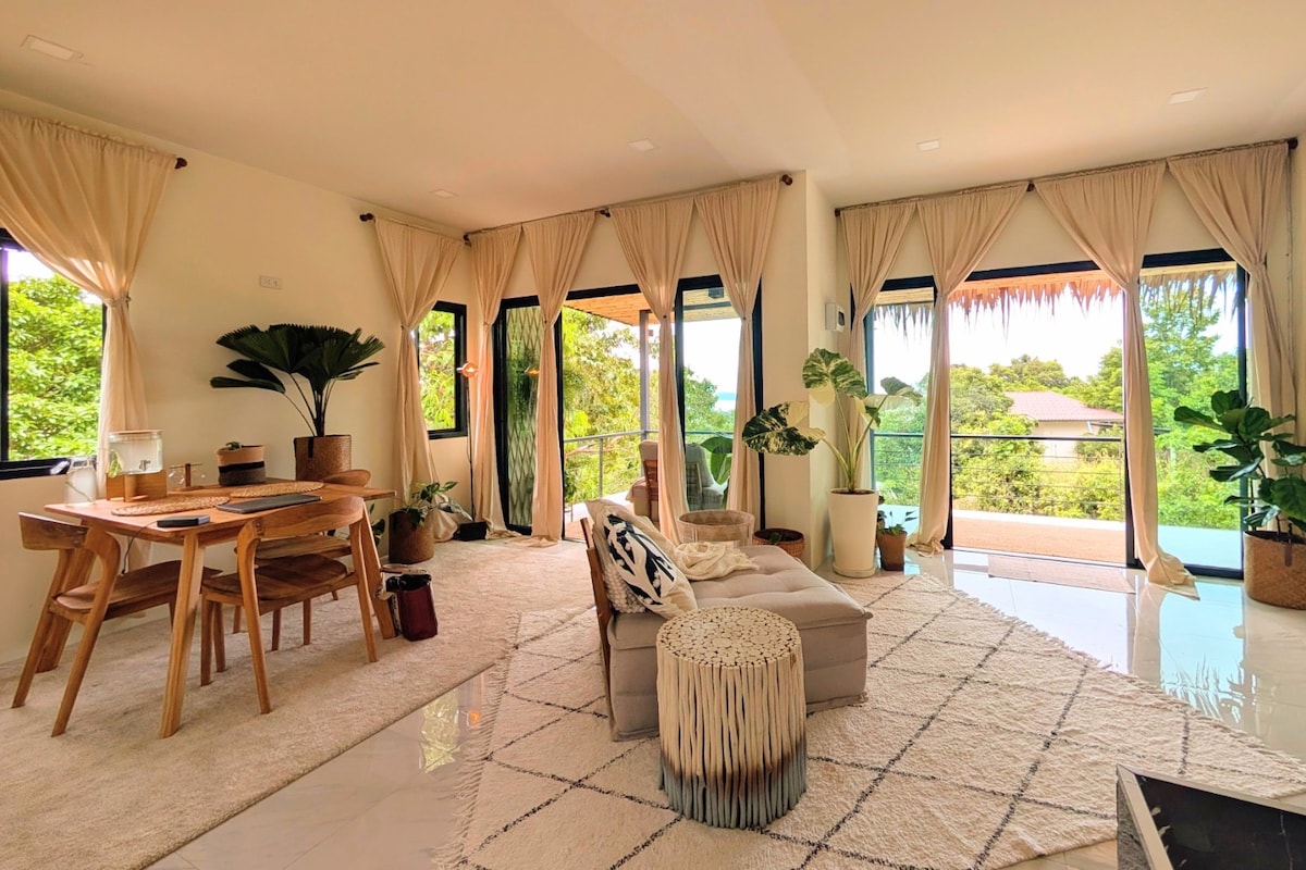 LOLISEA le ofrece un alojamiento independiente y espacioso con una piscina privada infinita (agua salada sin cloro) que le ofrecerá unas vistas impresionantes del Parque Nacional de las Islas Ang Thong, así como de su isla vecina, Koh Tao. Una casa totalmente equipada para su mayor comodidad: cocina funcional, zona de relajación con un televisor grande, dormitorio separado y con aire acondicionado, y baño abierto. Todo ello decorado con modernidad sin alejarse del entorno natural.