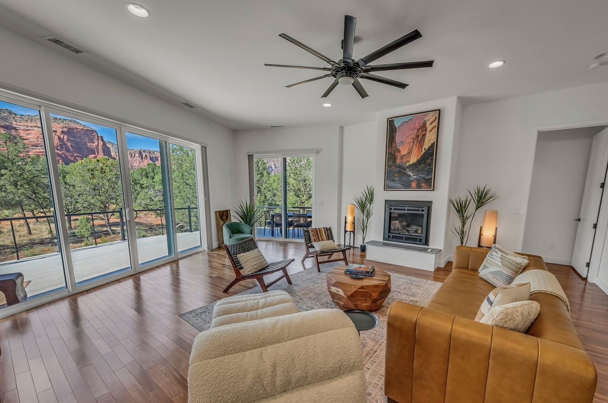 Remodelación recién terminada de 4000 pies cuadrados de un moderno refugio de lujo que destaca por su diseño y estilo. La casa cuenta con un cine privado y una sala de juegos con mesa de billar y bar que ofrece un espacio para pasar un buen rato con amigos y familiares mientras estás de vacaciones. Magníficas vistas desde todas las salas de estar y dormitorios. ¡Ubicado en el muy deseable barrio de West Sedona con todas las comodidades de tiendas de comestibles, muchas tiendas, restaurantes de primera, rutas de senderismo y alquiler de bicicletas/todoterreno! ¡Reserva rápido!