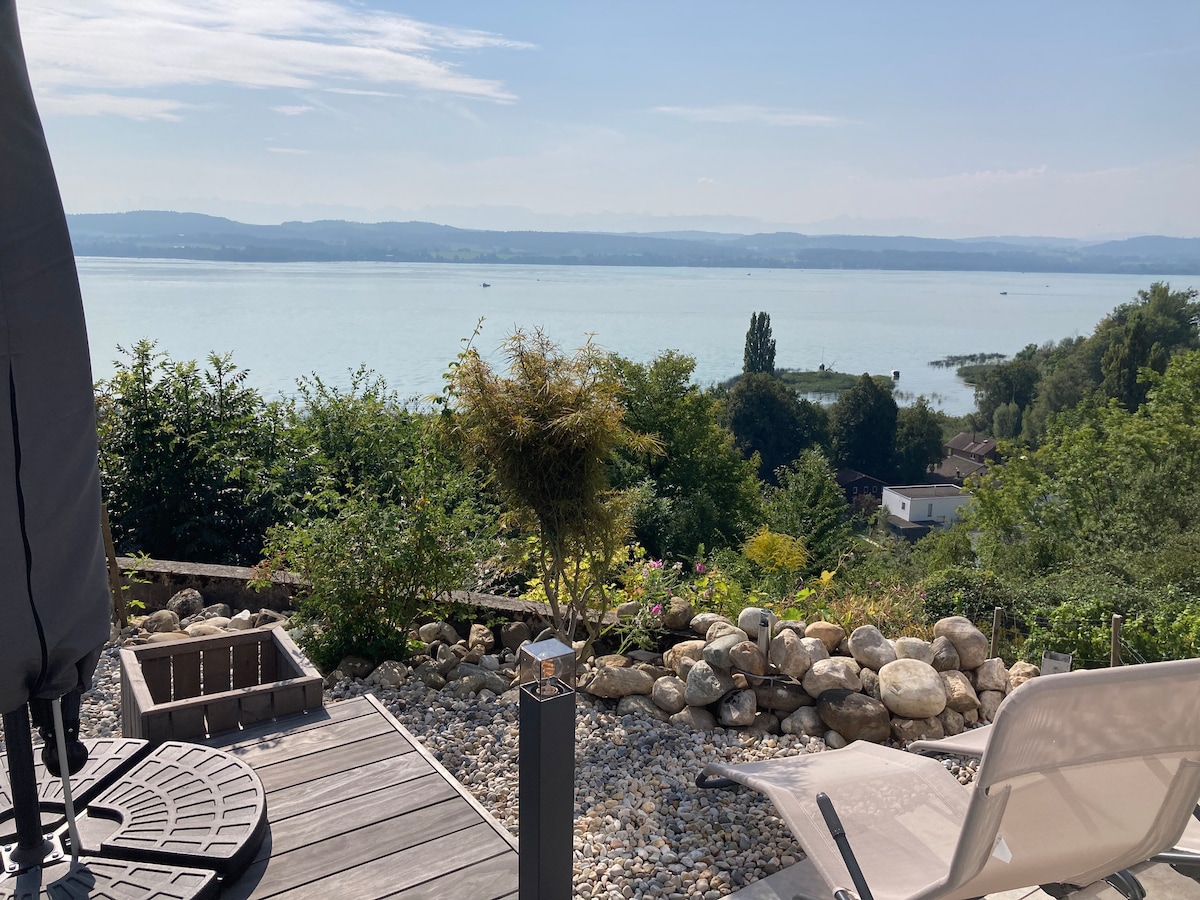 Esta hermosa casa con vistas despejadas al lago y a los Alpes se encuentra a solo unos 100 m por encima del lago de Murten. La casa cuenta con todas las comodidades para pasar unas excelentes vacaciones. La casa también es ideal para combinar lo agradable con lo útil y, por ejemplo, disfrutar del teletrabajo y de unas vacaciones lejos de la rutina diaria.
