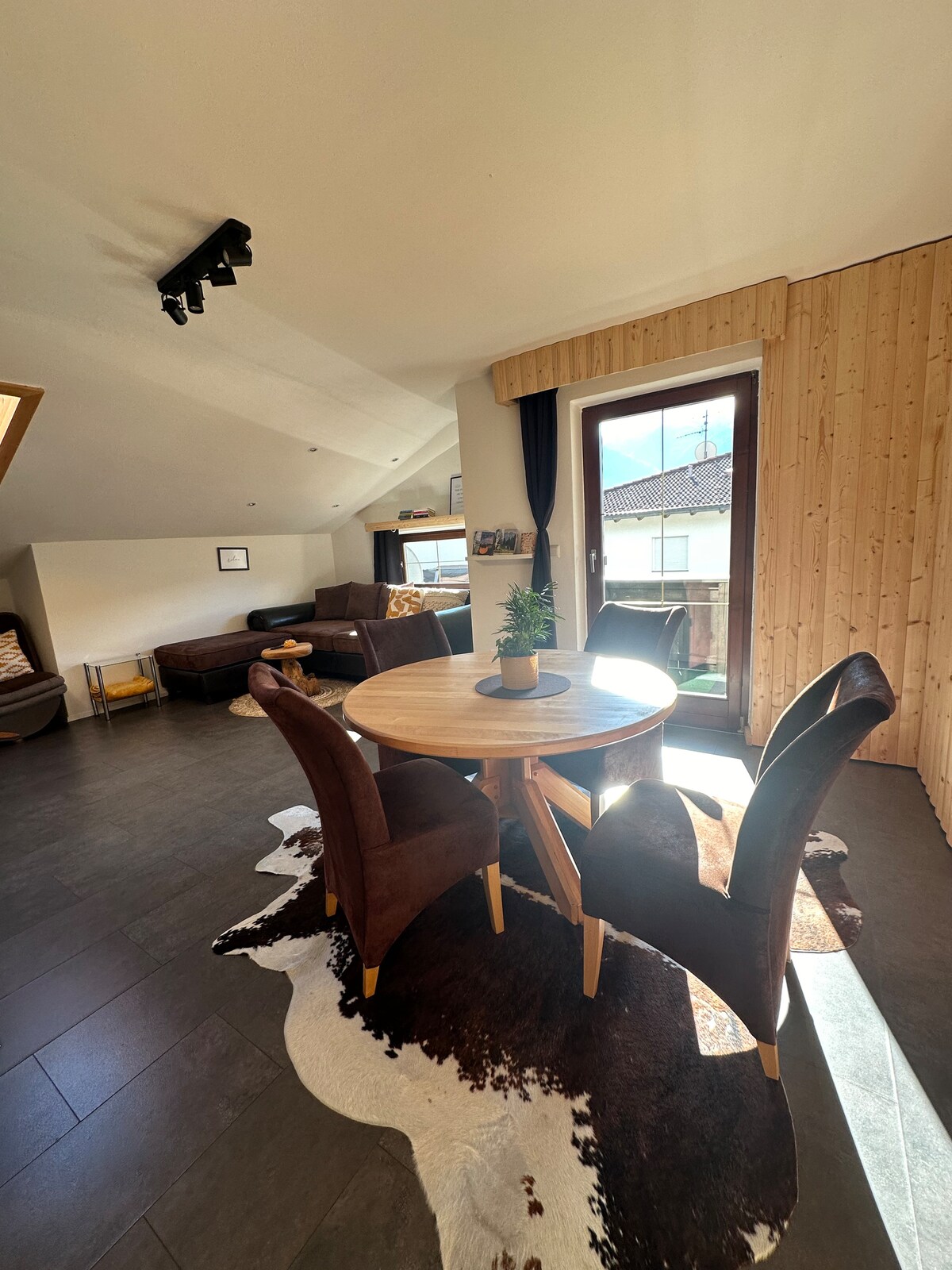 Situated on the outskirts of a Tyrolian mountain village this place offers you a wonderful-broad view. The apartment, lovingly combining tradition and modernity will let you calm down and recharge your batteries instantly. A closeby cable car enables you to all kinds of mountain sports in summer and winter. Yet- even those, who just "stay and relax" will feel at home. WIFI, TV, BT-boxes, parking space are available free of charge; for the Sauna we take a small feey. Kitchen is well equipped .