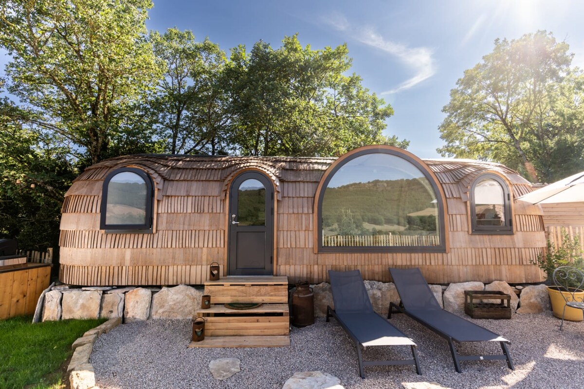 Alojamiento insólito en el ambiente «hobbit» enclavado en el fondo de un jardín salvaje con vistas a la ciudad. Se accede a través de una ruta de senderismo (empinada). El alojamiento consta de una sala de estar con chimenea, una pequeña cocina, una alcoba para el dormitorio, un pequeño baño, una terraza con vistas al valle y la ciudad (a 1 km), y novedad, un baño calentado con leña (excepto en verano) Hay velas y música disponibles para crear ambiente ¡Ideal para una estancia romántica o un momento fuera de temporada!