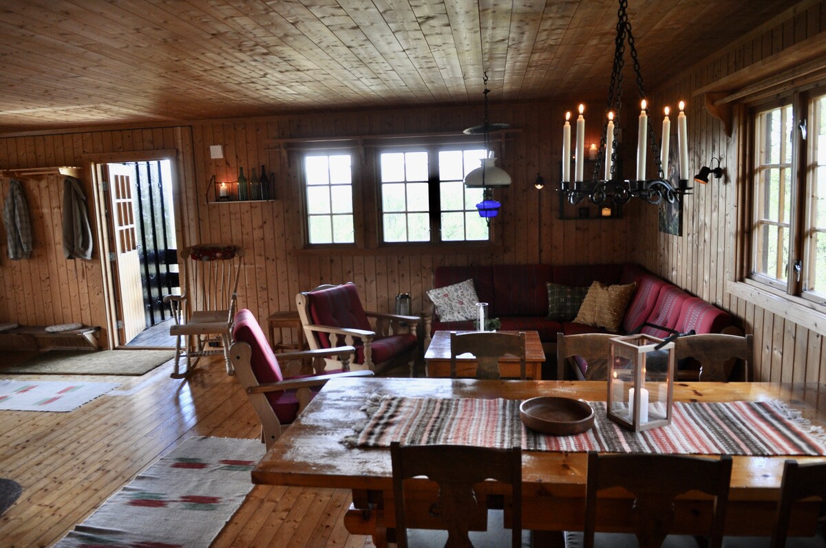 Simple and charming mountain cabin located at the tree line, 1000 meters above sea level. It is only one kilometer from the national park, and it is five kilometers to walk to the Peer Gynt cabin. The cabin has neither running water nor electricity, but it has solar power, which is generally sufficient for charging phones and using lamps. Water is fetched from the stream behind the cabin. There is an outdoor toilet in the outbuilding next to the cabin. The cabin is heated with firewood.