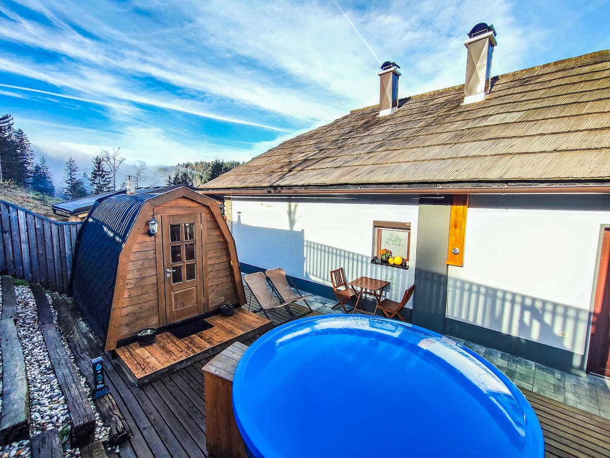 Experience the perfect blend of luxury and nature in our stunning mountain studio! Wake up to breathtaking views of majestic peaks and immerse yourself in the tranquility of unspoiled nature. Rejuvenate in our private infrared sauna and unwind in the outdoor hot tub on the covered terrace. In summer, enjoy a refreshing dip in the pool and the unique sight of zebras grazing peacefully just below the studio. A stay that promises peace, inspiration, and unforgettable memories awaits you.