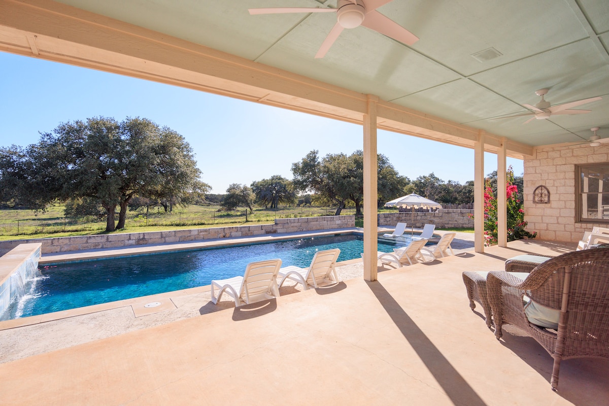 Escápate a Boot-sy Ranch, un tranquilo refugio privado de 21 acres justo al sur de Austin en Kyle, TX. Este encantador alojamiento de 4 dormitorios tiene capacidad para 8 personas y es perfecto para familias. Disfruta de una cocina gourmet, una piscina privada climatizada (costo adicional para calentar la piscina) y serenas vistas al campo. Relájate junto a la chimenea o explora los amplios terrenos. La combinación perfecta de aislamiento y comodidad para tu escapada a Texas.