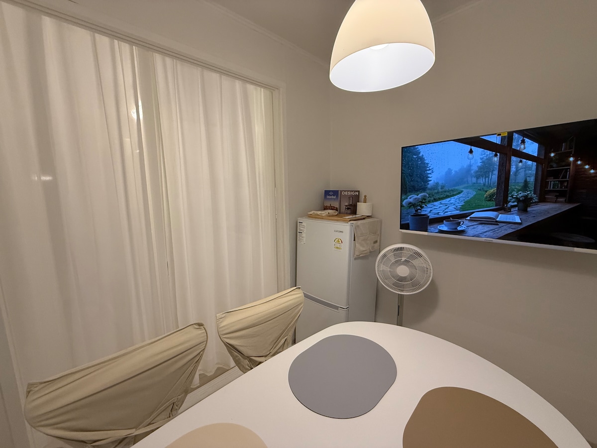 1. A 7-10 minutos a pie desde la estación de verano 2. TV de 65 pulgadas + cable + Netflix, YouTube (Sin embargo, debes ingresar tu cuenta manualmente) 3. WiFi 4. Mesa de comedor, 4 sillas 5. Sofá combinado reclinable 6. 1 cama tamaño queen, 1 quintopper 7. Aire acondicionado, refrigerador, lavadora, cama de matrimonio, utensilios de cocina 8. Justo enfrente de Gyeongchunseon Forest Road Park 9. Estacionamiento disponible en el complejo