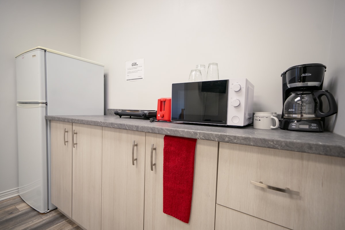 Bienvenue dans notre suite urbaine moderne et confortable avec deux chambres fermées. Parfaite pour un séjour en couple, en solo ou pour un déplacement professionnel, cette suite combine design, praticité et tranquillité. Lit double confortable; kitchenette équipée (micro-ondes, plaque, cafetière, etc.) literie, vaisselle. La salle de bain et douche sont partagées avec d’autres locataire; •Wifi, câble, TV intelligente; •Non-fumeur •Les animaux ne sont pas acceptés.