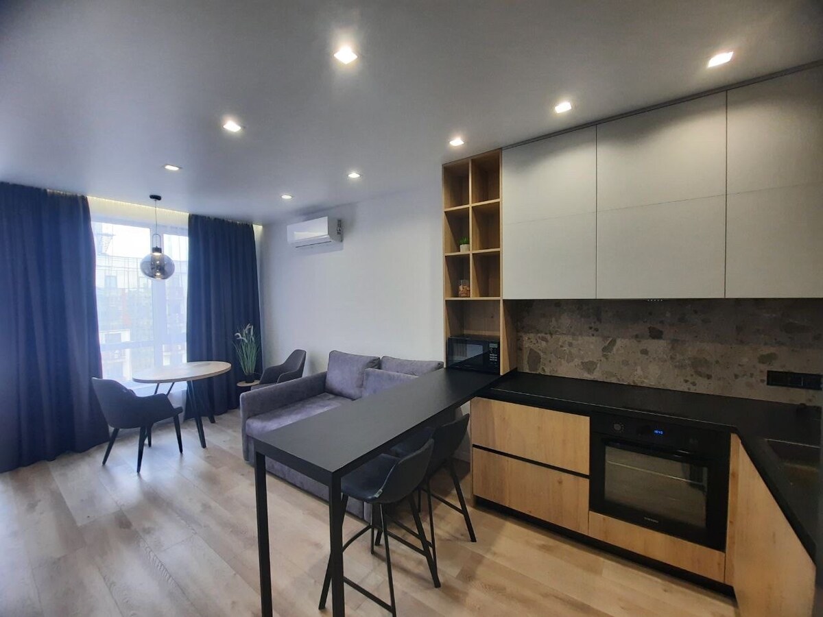 Le ofrecemos instalarse en nuestra acogedora y elegante habitación del aparthotel , que se encuentra en la playa, a 50 m del mar (primera línea), el Golfo, Carolino Bugaz. La habitación está disponible en el 8vo piso del Promenade Club Resort. La habitación tiene todo lo que necesitas para una estancia cómoda: una nevera, un televisor, un televisor, aire acondicionado, WiFi, una cama doble grande, un baño privado. Desde la ventana hay una hermosa vista del mar a la izquierda y el parque acuático y el estuario del Dniéster de Belgorod a la derecha.