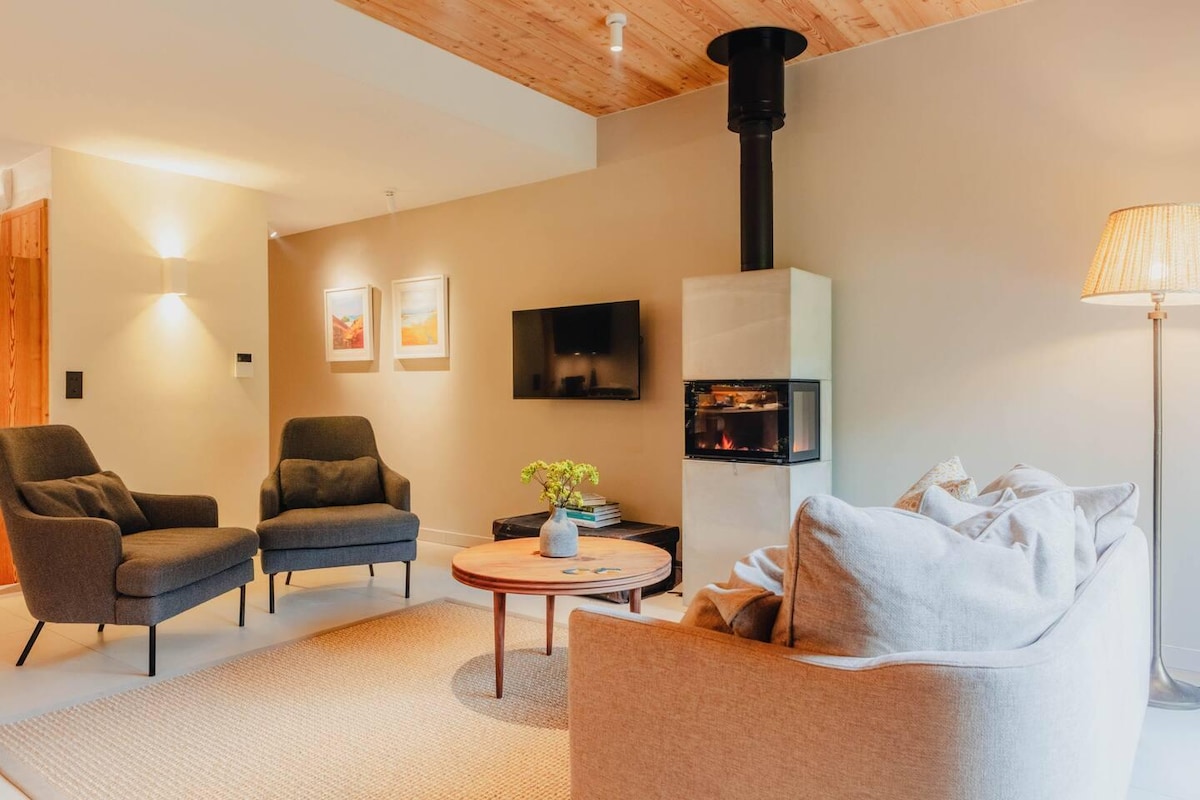 La Cabane can accommodate up to 7 people. Linen is an optionnal service. The apartment's area is 55 m²+ 25 m² terrace Lying in a deckchair on the south-facing terrace, enjoy the panoramic view of the snow-capped mountains of the Southern Alps, without any vis-à-vis. When it's cold outside, warm up in front the chimney, sitting in a cozy club chair: you can imagine yourself in an old chalet of yesteryear... nevertheless equipped with wifi, television and everything modern comfort.