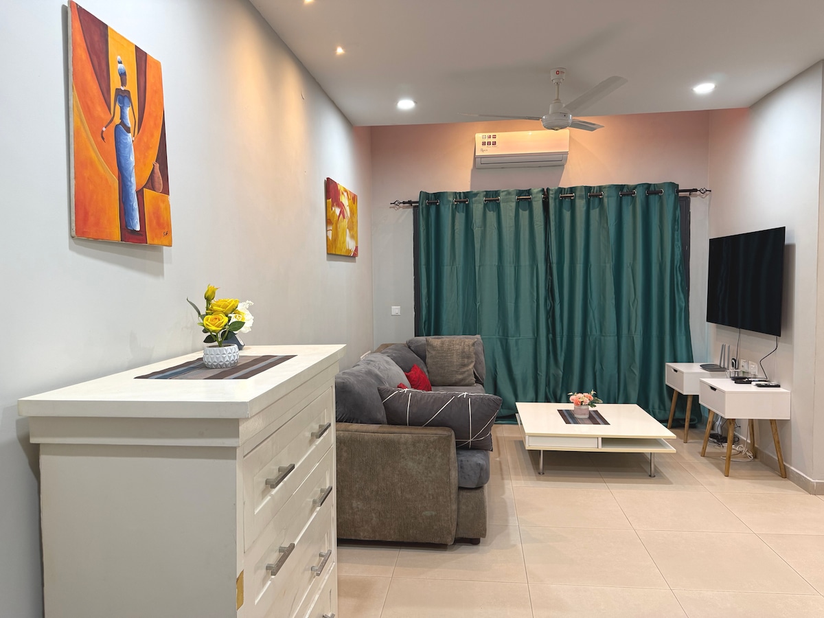 Los apartamentos Aquaview recientemente construidos en Bijilo. El apartamento más lujoso de Gambia. Junto al hotel de 5 estrellas Coco Ocean. Hermosamente amueblado 1 apartamento (con sofá cama para 2 niños / 1 adulto). ¡La unidad tiene cocina totalmente equipada, lavadora, aire acondicionado, cocina totalmente equipada, TV inteligente y wifi! Las comodidades incluyen agua y electricidad las 24 horas, seguridad las 24 horas, piscina, supermercado, restaurante, gimnasio, estacionamiento subterráneo, ascensores, etc. D500 pagados a la electricidad por cada huésped. Gracias.