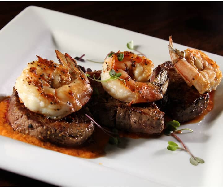 Colaborar con los clientes para crear una experiencia Surf n Turf personalizada, seleccionando proteínas terrestres y marinas de primera calidad, combinándolas con aperitivos seleccionados, dos guarniciones sabrosas y un postre decadente, para una experiencia gastronómica inolvidable y personalizada.