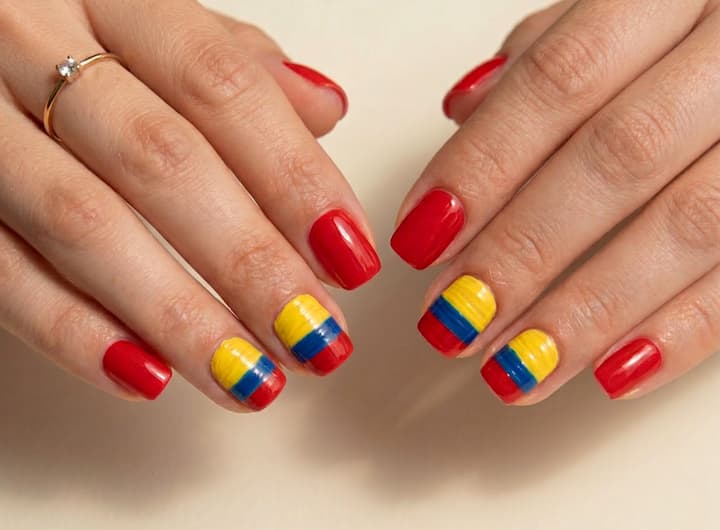 Técnica de manicura en seco con esmalte en gel y 4 uñas de tu elección con la bandera de tu equipo de fútbol.