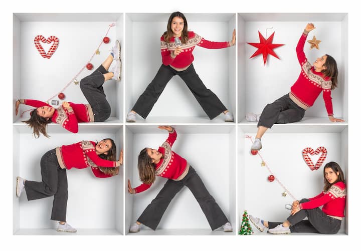 Cada integrante participa dentro de su propia caja y al interactuar se construye una composición final unica: un colage de hasta 12 fotografias hecho de momentos reales y divertidos.