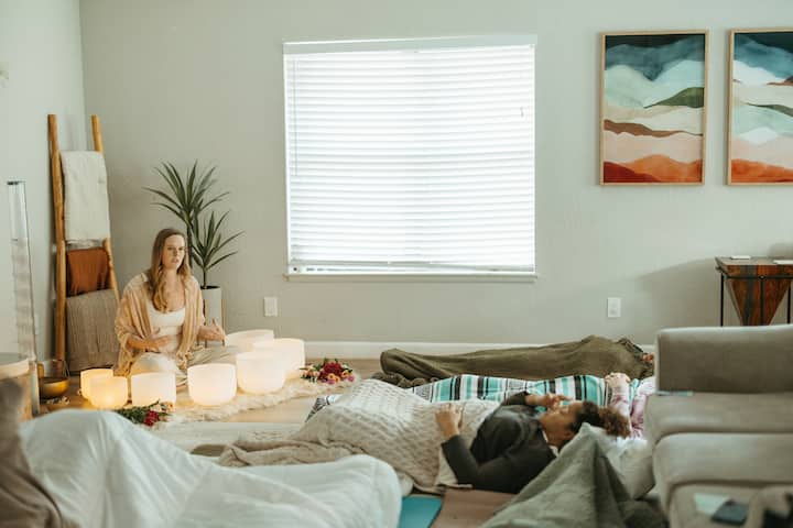 Mediante el uso de instrumentos cuidadosamente seleccionados (cuencos de cristal, gong, campanas y más), te guiarán para que tu sistema nervioso alcance el estado necesario para disfrutar de un descanso auténtico. Ashley aporta sabiduría clínica. Y un profundo cuidado al mantener este espacio, creando una experiencia tan intencional como enriquecedora. No se necesita experiencia. Ashley reserva 30 minutos antes y después para la preparación de los instrumentos.