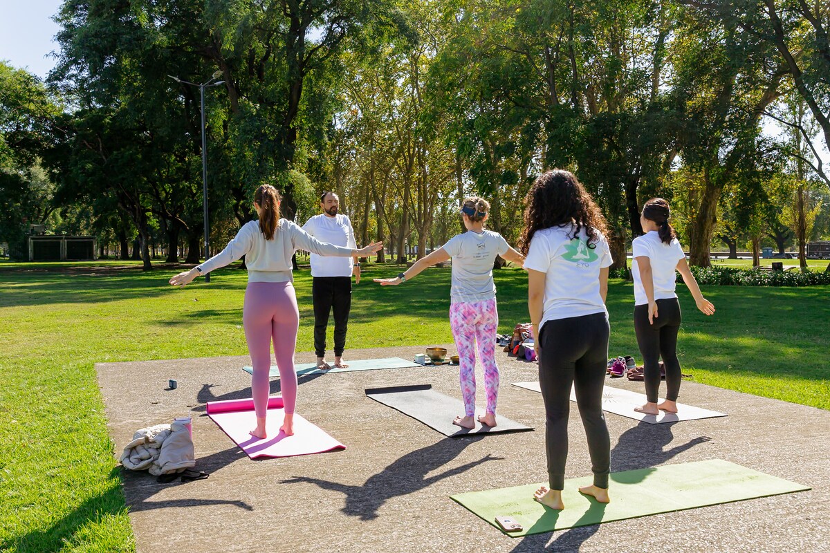 Una clase en los espacios verdes de Buenos Aires. Conecta con tu ser interior y aprende a vivir cada momento. Las campanas tibetanas promueven la relajación.