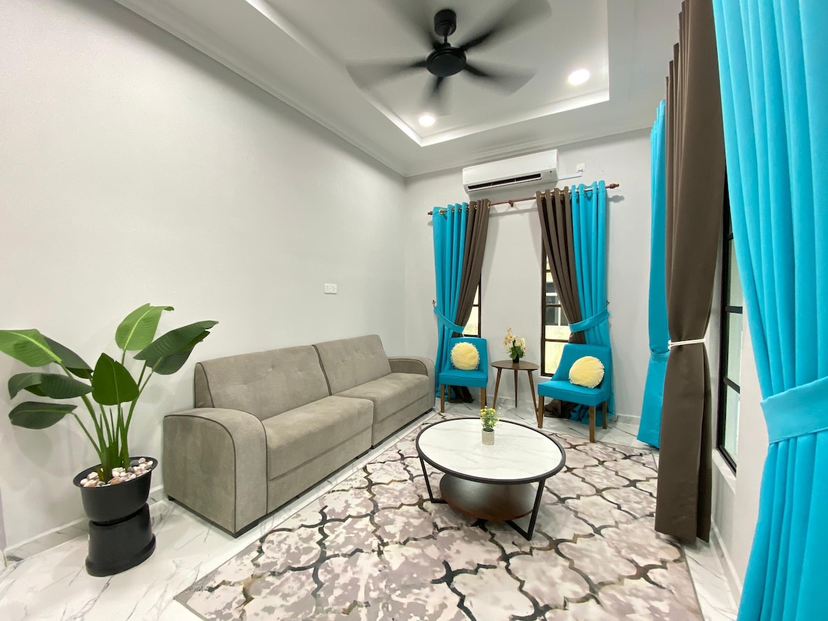 Una acogedora casa de familia con 4 dormitorios con aire acondicionado (AC) destinada a ofrecer el máximo confort durante tu estancia aquí. Se encuentra en una ubicación estratégica que está muy cerca de la playa (Pantai Tok Jembal y Teluk Ketapang), UMT y UNISZA, y el aeropuerto Sultan Mahmud. Ideal para aquellos que están de vacaciones con la familia, asisten a convocatorias, registro de estudiantes y actividades de ocio. También hay muchos restaurantes locales cerca.