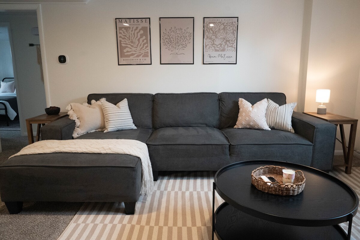 Acogedor durante los meses de invierno en el soleado Colorado en nuestra amplia terraza en la azotea, completa con una parrilla de gas y una relajante silla de huevo colgante. El espacio Disfruta de tu estancia en nuestra moderna casa de carruajes con altillo en el centro de Loveland, recién construida en la primavera de 2024. Diseñado pensando en la hospitalidad, este apartamento de 2 dormitorios de lujo está lleno de luz natural y acabados elegantes y contemporáneos. ¡La unidad estará decorada para las fiestas desde después de Acción de Gracias hasta finales de diciembre!