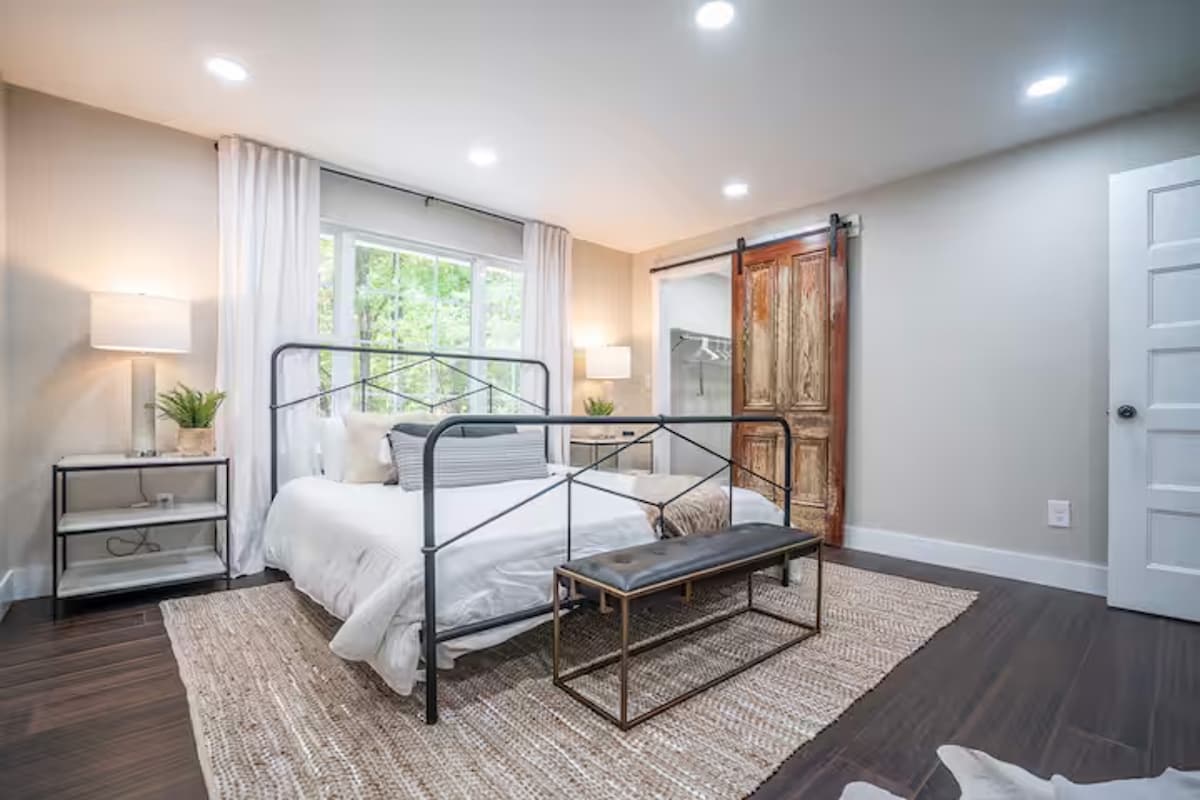 Bienvenido a Camp Mae, una estancia de inspiración escandinava en Monteagle, TN. Diseño minimalista pero elegante, que ofrece la escapada perfecta: a pocos minutos de la ruta de senderismo Fiery Gizzard y Monteagle. Relájate en la bañera de hidromasaje o reúnete alrededor de la hoguera. Para los viajeros conscientes del medio ambiente, ofrecemos un cargador de coche eléctrico. Experimenta el aislamiento de las montañas a solo unos minutos de senderismo de clase mundial, restaurantes y tiendas locales. Este retiro armoniza el lujo con la naturaleza en un entorno sereno.