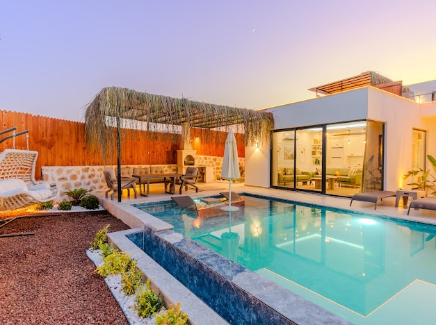 Merkezî konumda bulunan bu sakin yerde sade ve rahat bir konaklamanın tadını çıkarın.Minimalist tasarımı tertemiz havuzuyla size özel deneyim sunuyor. Modern ve huzurlu tatil evi arayanlar için burası tam bir cennet.Günü havuz başında geçirin,akşamı barbekü keyfi ile taçlandırın.Tüm detaylar düşünülmüş sadece valizinizi almanız yeterli.