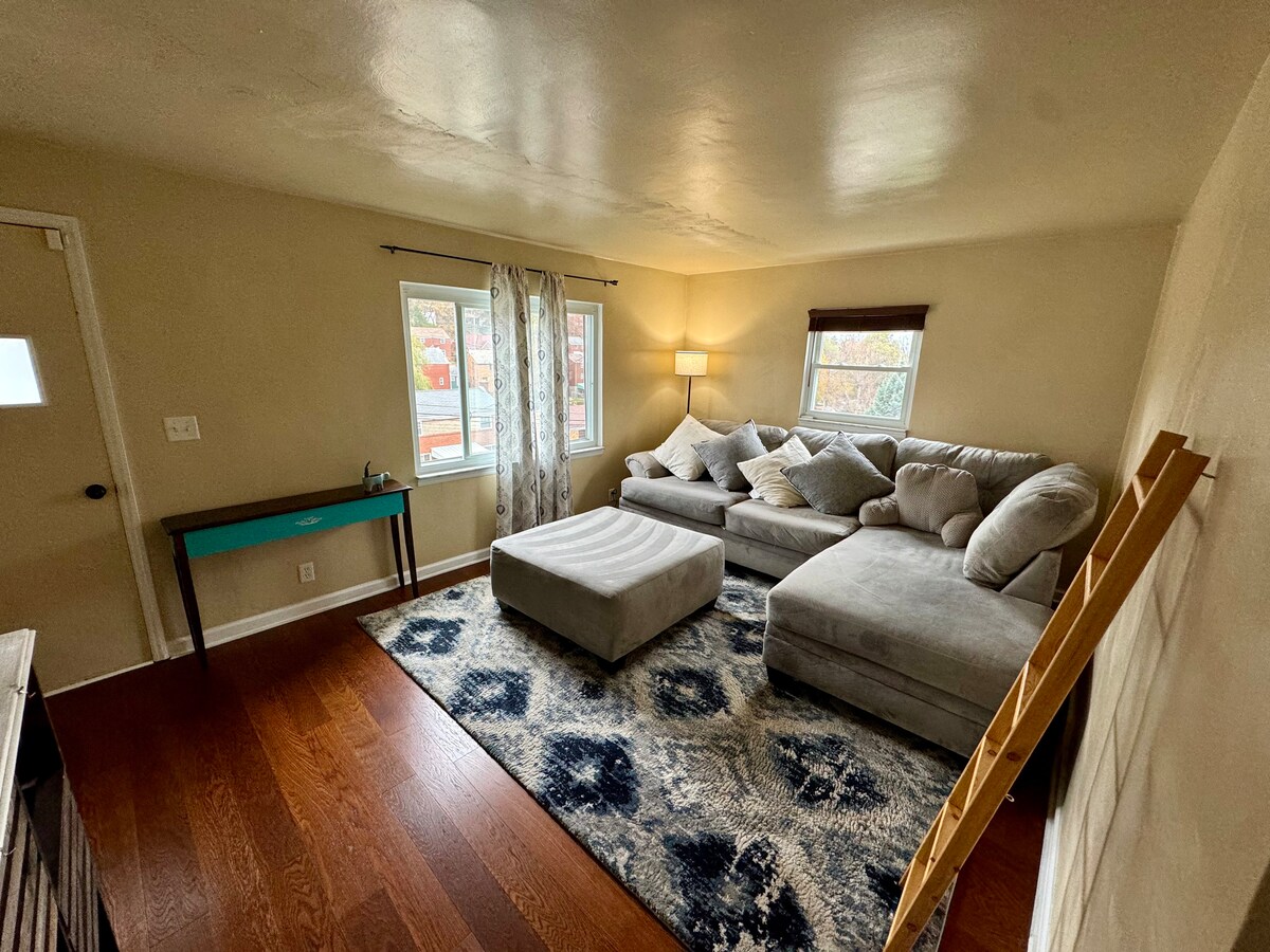 Private 2nd and 3rd floor apartment in the family friendly Brookline neighborhood of Pittsburgh. Ten minute drive to downtown and Strip District, fifteen minute drive to hospitals, Universities, stadiums. Bus stop one block and T-station one mile away. The peaceful front porch is a great place to watch the sun set and the relaxing back yard has multiple perennial gardens perfect for making your own cut flower bouquet. One off street parking spot and access to washer and dryer in the basement