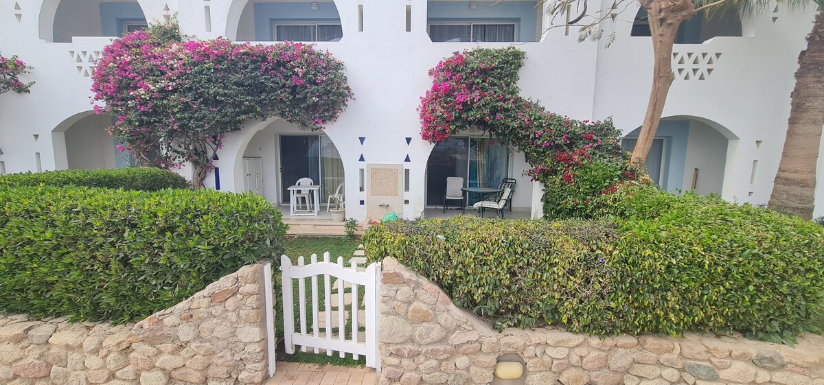 Vive tu sueño vacacional en nuestra hermosa VILLA 31, directamente en el Amwaj Hotel & Casino Resort de 5 estrellas ***** Estudio de lujo de 30 m en el primer piso con vistas al jardín y a la piscina + terraza en la azotea de 130 m * Minibar (pequeña nevera, hervidor y cocina) * TV de pantalla plana por satélite y WIFI. * Acceso gratuito a la hermosa playa privada de arena de 450 metros de largo. * Acceso gratuito a la piscina del hotel justo enfrente de nuestra villa. Los precios NO incluyen la electricidad