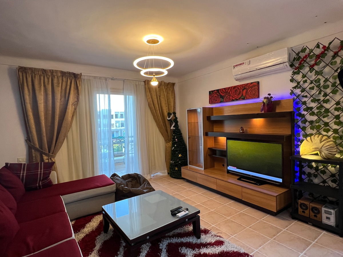 Hermoso apartamento de dos dormitorios con baño en suite en Naama Bay, en un complejo tranquilo y cerca de la piscina, ubicado en el centro de la ciudad de Sharm El Sheikh, justo detrás del hotel Novotel. Muy cómodo, especialmente para familias y, sobre todo, es ideal para estancias largas, ya que está equipado con todo lo que necesitas para sentirte como en casa. Uno de los mejores en Sharm El Sheikh para disfrutar de unas maravillosas vacaciones en el mar Rojo.