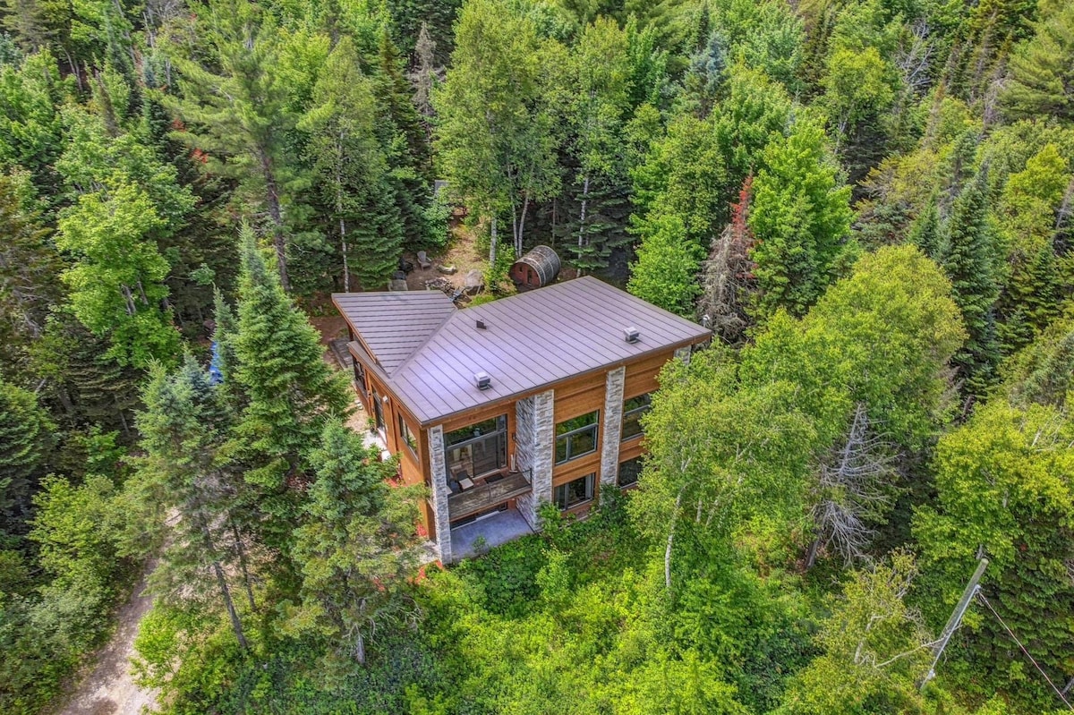 En la naturaleza, cerca del Parque Nacional de la Mauricie Experiencia lúdica con un juego de Conecta 4 gigante Vistas panorámicas a las montañas Sauna privada, terraza y sala de estar al aire libre Cocina moderna con isla y todos los elementos esenciales Habitación cerrada con espacio de trabajo (sin WIFI) Banco que se convierte en cama doble en el salón Baño privado con ducha e inodoro Chimenea de leña interior y exterior Aire acondicionado Abierto todo el año ¡Se admiten mascotas!