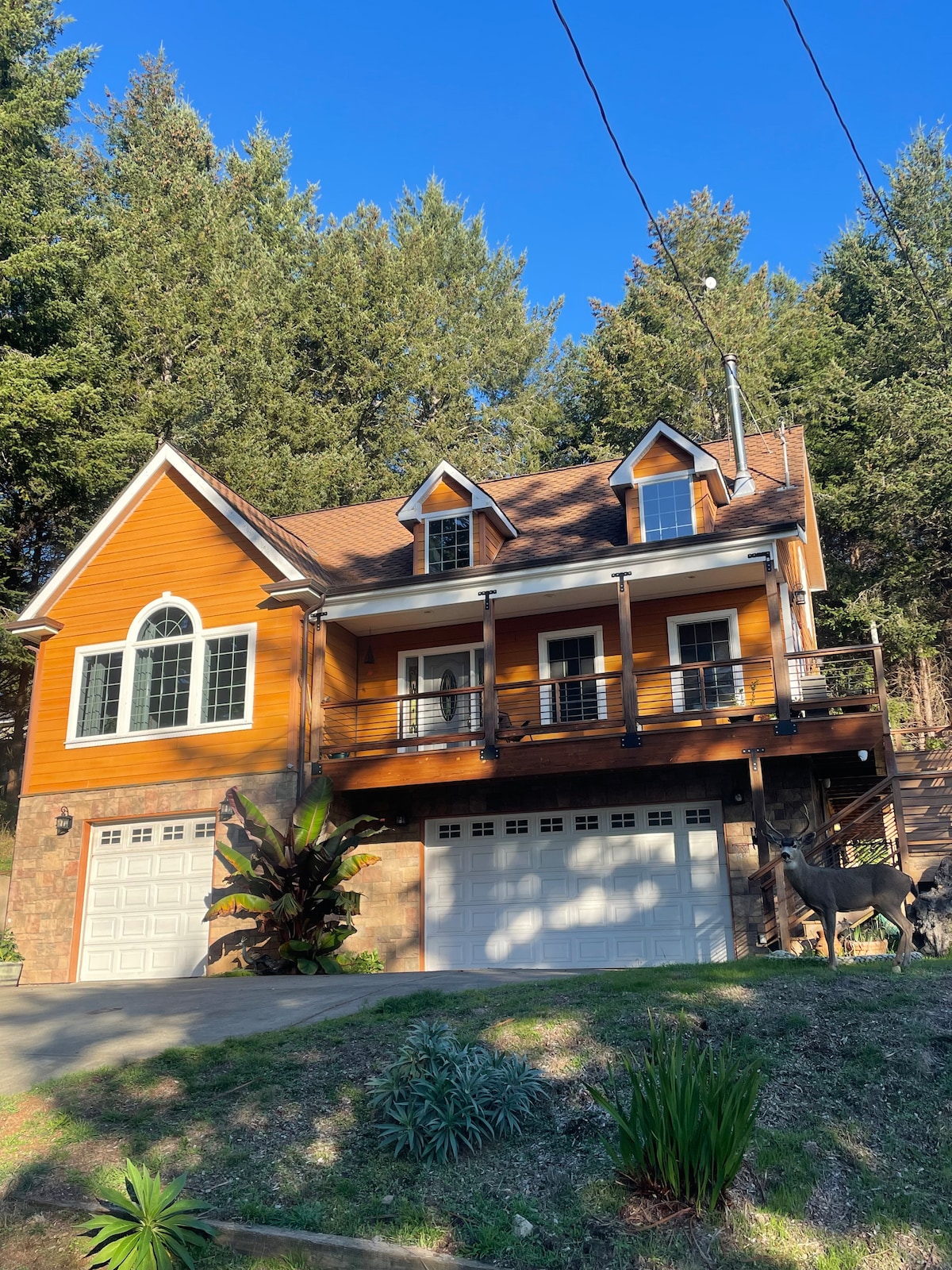 Este alojamiento con estilo es perfecto para viajes románticos o familiares. Ubicado en las secuoyas con una impresionante vista al acantilado y rodeado de acceso privado a Redwood Creek. ¡A solo 10 minutos de la autopista 101! Disfruta de esta espaciosa casa de 3 dormitorios y 2 baños a las afueras de Redway, CA. La calefacción radiante del suelo la hace muy cómoda. Perfecto para visitar Shelter Cove o el Parque Nacional de Redwood. Disfruta de una barbacoa en la terraza. Juega al ping pong. ¡Sumérgete en el jacuzzi con los sonidos del arroyo corriendo! Trae a tu perro.