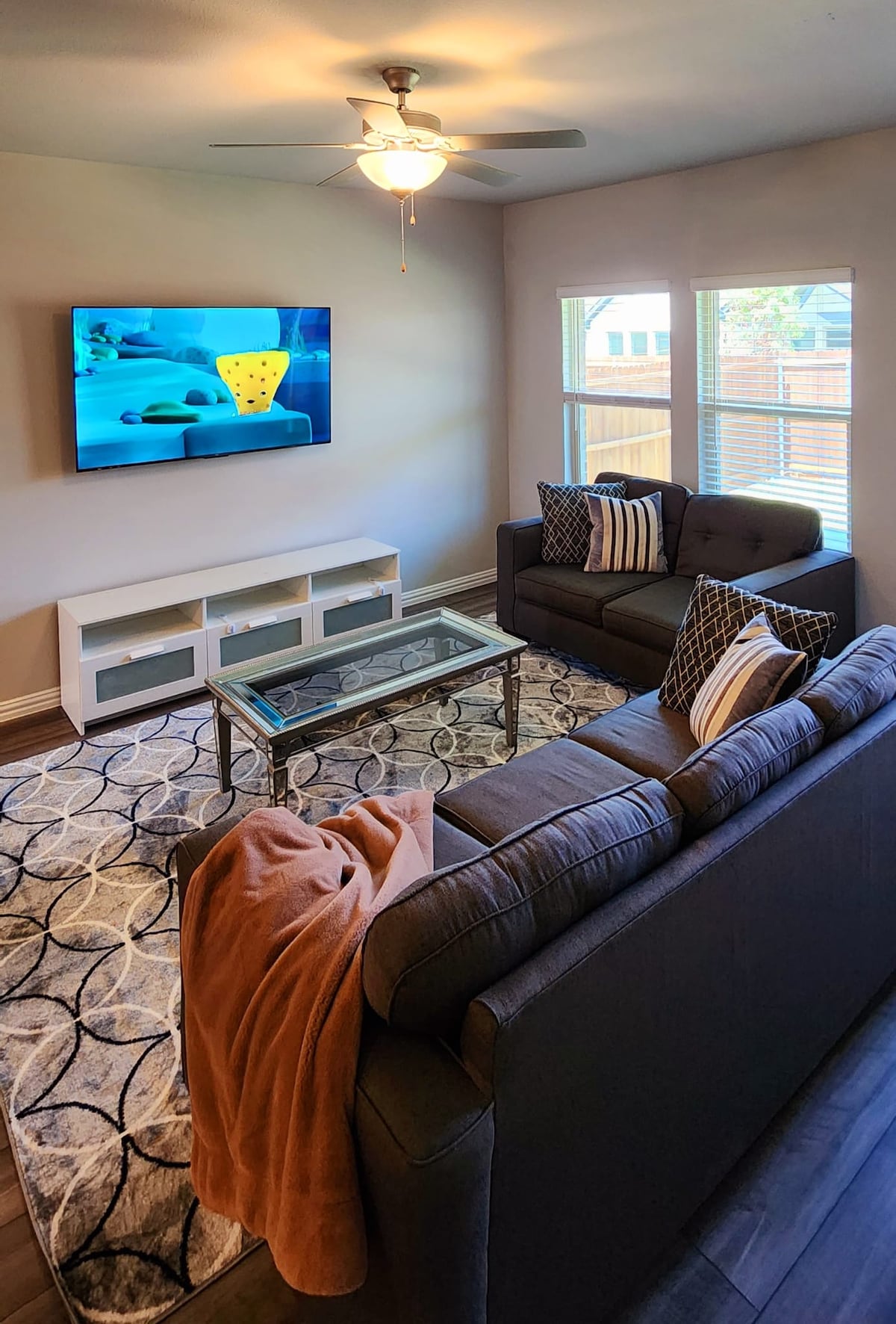Welcome to our beautiful, spacious 3bd, 3ba home designed for comfort, relaxation, and memorable stays. Thoughtfully equipped with everything you might need and more. The layout includes two large living areas, giving families, groups, and business travelers plenty of space to relax, work, or unwind after a busy day. Enjoy the fenced backyard with a covered patio & outdoor games. Conveniently located near Hwy 75 🚗✨ Nearby Buccees HEB Walmart Ford Sports Village @ Z-Plex Allen Premium Outlets