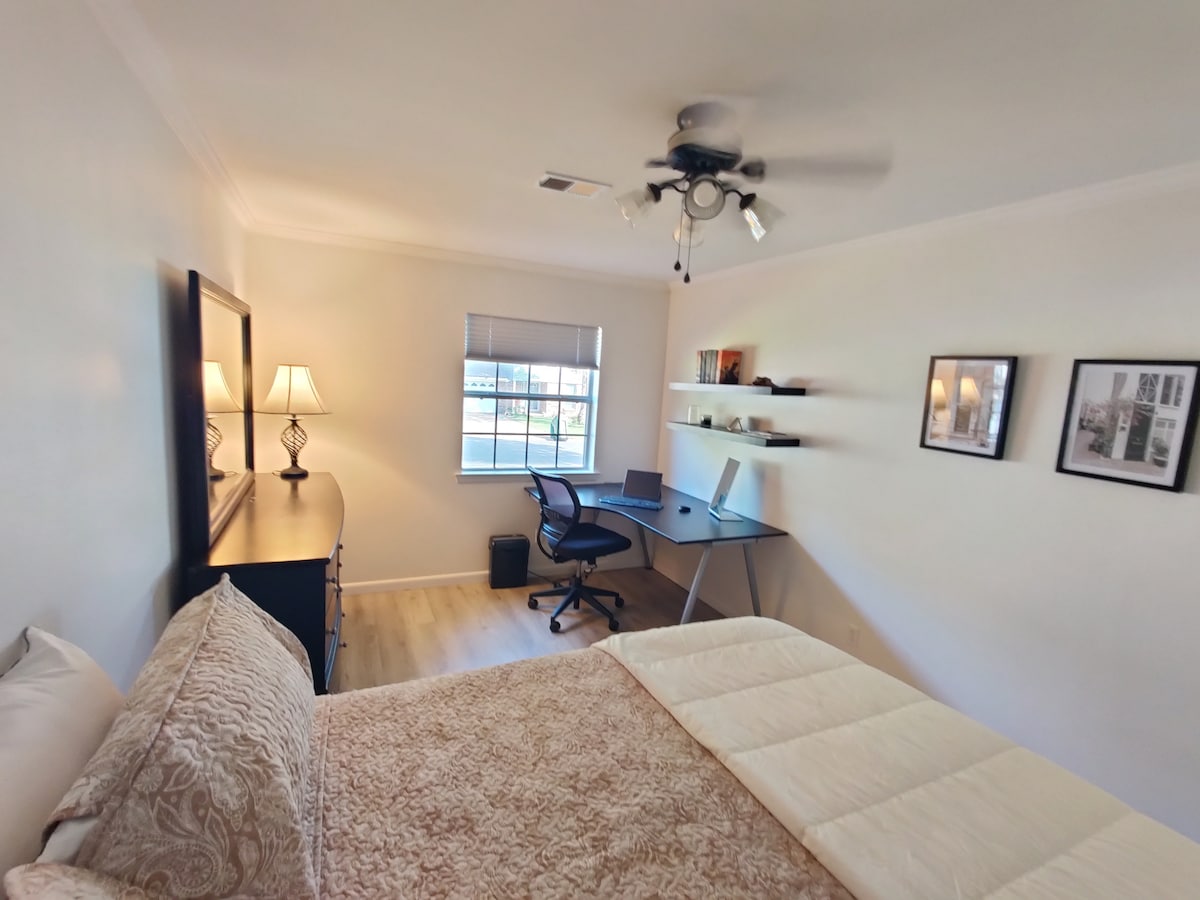 Esta unidad es de 3 dormitorios, 1,5 baños, 1 cocina, 1 sala de estar en un tríplex. No hay zonas compartidas, excepto el gran patio trasero. Hay plazas de aparcamiento independientes, pasillos y puertas de entrada para cada unidad. ¡La velocidad de Internet es rápida! Hasta 100 Mbps. Televisión inteligente de 65pulgadas con barra de sonido en el salón. El dormitorio principal también tiene una televisión inteligente. Las camas tamaño king/queen son muy cómodas (no son extremadamente suaves, definitivamente no son firmes). El comedor y las salas de estar son espacios abiertos para que se pueda comer y visitar sin perder un momento.