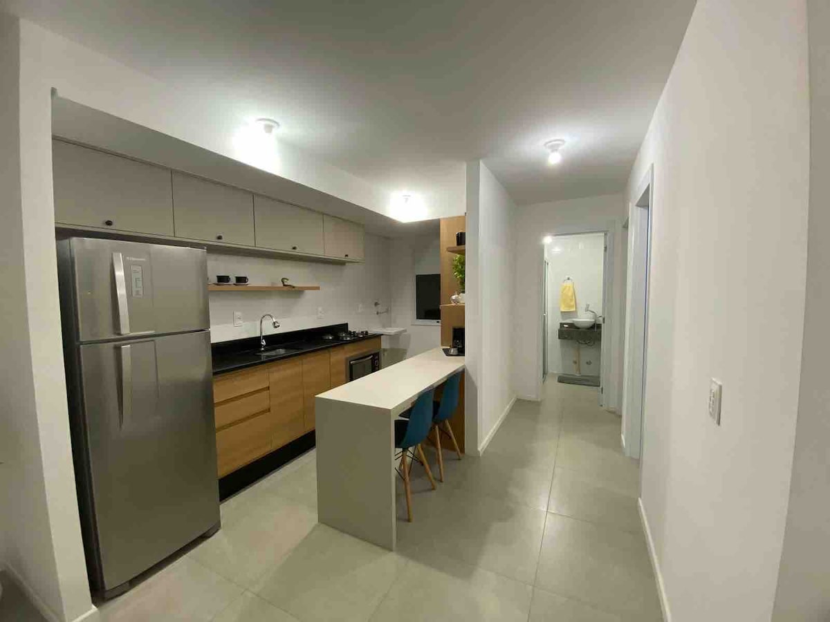 El condominio está cerca del centro de la ciudad, del centro comercial Pelotas, del Parque Una y de Carrefour. Departamento en el tercer piso: • Condominio con piscina y conserje las 24 horas; • Apartamento con ascensor: • 2 dormitorios con cama doble y aire acondicionado; • Secador de pelo y plancha; • Toallas y ropa de cama; • Wi-Fi • Cocina con licuadora, tostadora, cafetera, freidora de aire, jarra eléctrica y microondas; • Aparcamiento para 1 (un) vehículo, edificio de garaje descubierto;