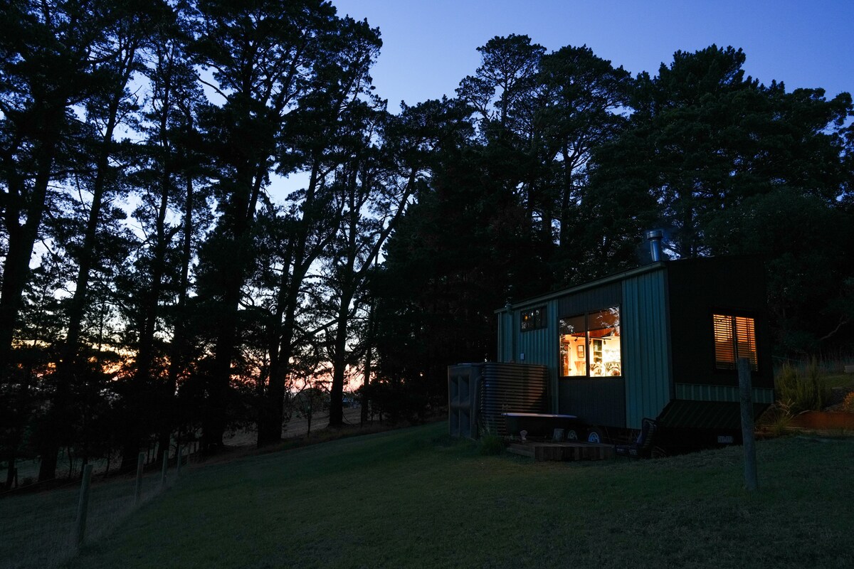 Tiny in size but so much to love, our thoughtfully made off-grid cabin features panoramic winery valley views and unique personal touches making your stay extra special. Take it all in soaking in a warm bath on your own private deck, plus a Queen bed, you are surrounded by nature yet still walking distance to 3 award-winning wineries, a hatted restaurant feat. a wine list of "local stars, international pours and a local bracket of curious jewels". Close to beaches and wild coastal nature areas.